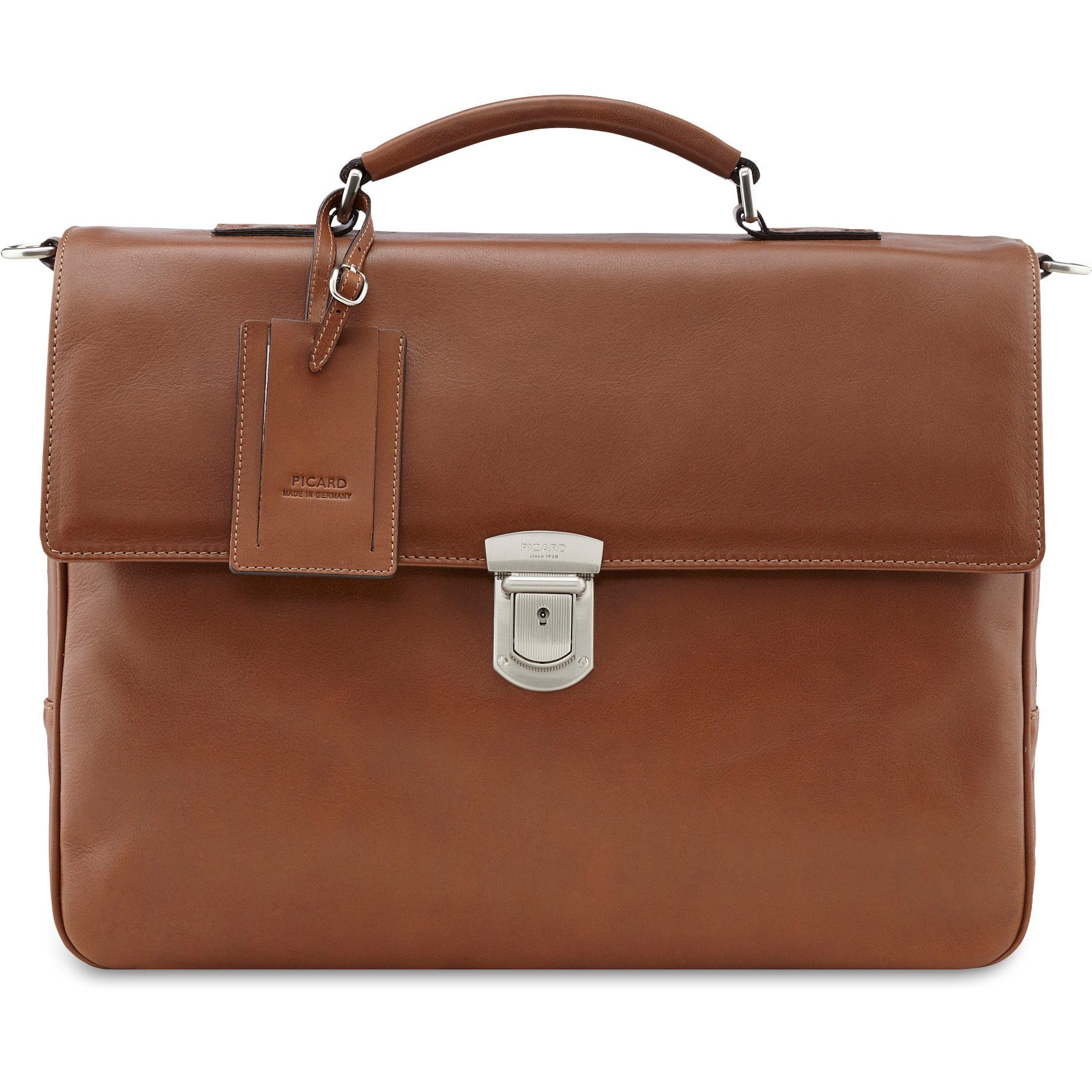 Mit der abschließbaren PICARD Aktentasche macht Arbeiten Spaß. Dank ihrer optimalen Ausstattung können Sie alles, was Sie im Büro oder in der Universität benötigen, strukturiert und ordentlich einsortieren. Ihre Dokumente kommen in dem geräumigen Hauptfach der PICARD Tasche sicher und stilvoll unter. Ob am Henkel getragen oder mit dem Schulterriemen umgehängt, die PICARD Authentic Office Bag Aktentasche ist Ihnen in jedem Fall eine Hilfe im Alltag. Hinzu kommt, dass sie in Deutschland hergestellt wurde und einen, bei PICARD gravierbaren, Lederbesatz besitzt.