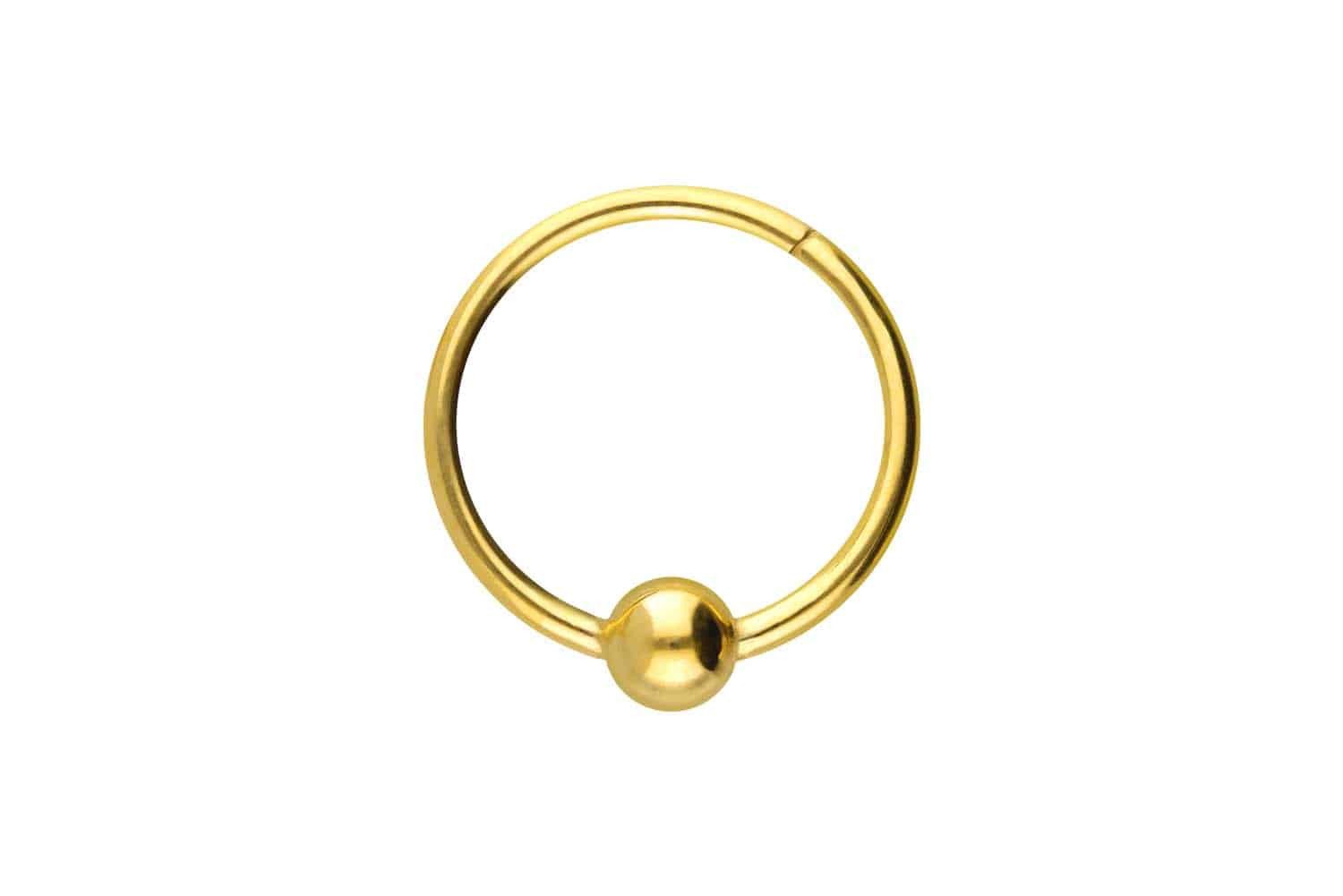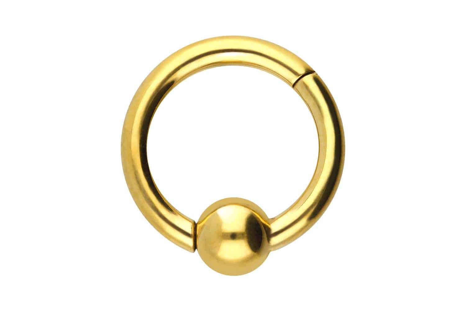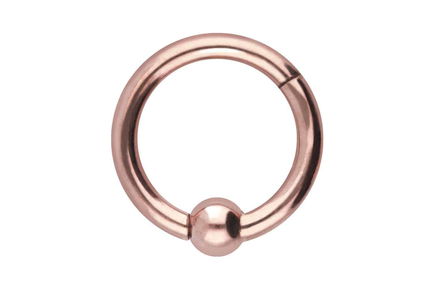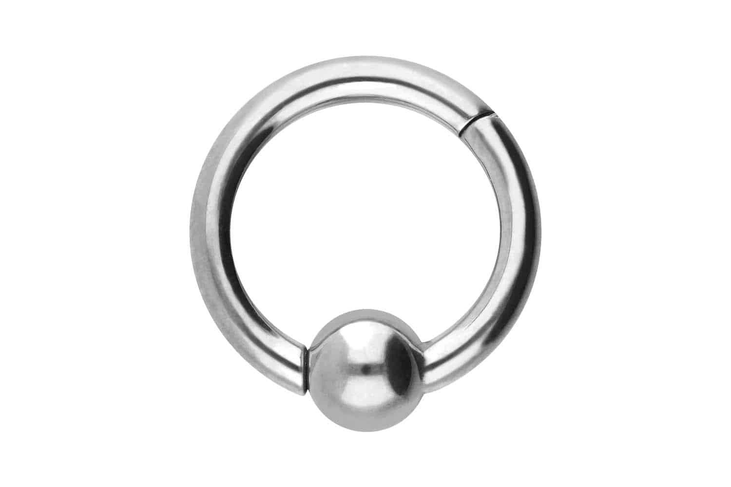 Einfache Handhabung und schönes Design - das sind unsere Clicker! Als Hauptmerkmal der Clicker zählt das praktische Scharnier, das den Einsatz in den Stichkanal enorm erleichtert. Das zur Herstellung verwendete Material (Titan Grade 23) zeichnet sich insbesondere durch gute Hautverträglichkeit, hohe Qualität und hohe Beständigkeit aus. Je nach Farbwunsch ist das Piercing mit einer kratzfesten PVD-Beschichtung überzogen. Besonders hervorzuheben ist die weißgoldfarbene PVD-Beschichtung, die dem Clicker einen hellen silbrigen Glanz verleiht. Das clever platzierte Scharnier ermöglicht es, den Clicker nahtlos zu schließen. Abgerundet wird das edle Design durch die Kugel. Ob am Ohr, an der Nase oder an der Lippe - unsere Clicker sind für die verschiedensten Piercingstellen geeignet. Die verfügbaren Stabstärken und Innendurchmesser sind unten aufgeführt.