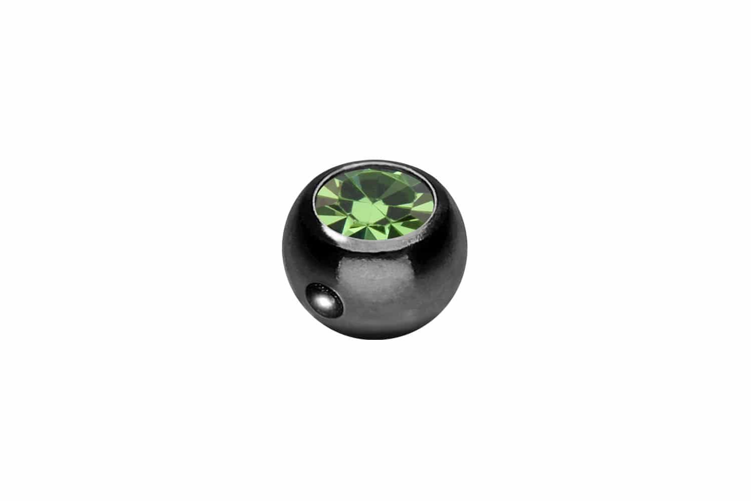 Diese einzigartige Klemmkugel besteht aus hochwertigem Chirurgenstahl 316L, der bekanntermaßen über Materialeigenschaften wie hohe Beständigkeit und ebene Beschaffenheit verfügt. Falls gewünscht, sorgt eine kratzfeste PVD-Beschichtung für eine kräftige Farbe nach Wahl, die durch die Hochglanzpolitur zusätzlich veredelt wird. In der Mitte der Kugel befindet sich ein funkelnder Kristall. Dank der zwei kleinen Einkerbungen sind zahlreiche Kombinationen mit anderen Artikeln aus unserem vielseitigen Sortiment möglich. Erhältlich ist das Schmuckstück je nach Materialfarbe in den unten aufgeführten Kristallfarben und Größen.
