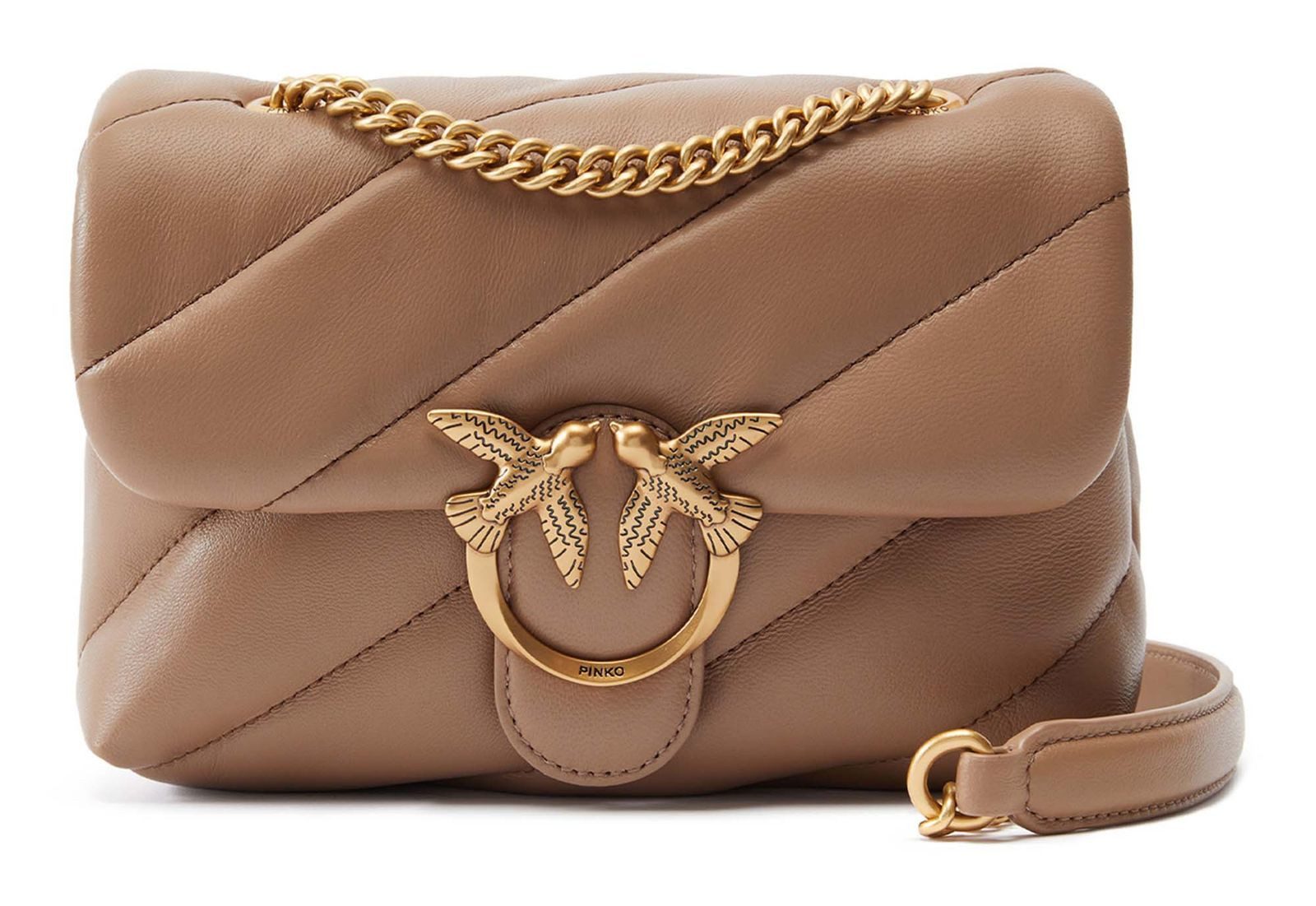 Elegante Umhängetasche von PINKO überzeugt durch sanftes Leder und edle Metall-Akzente. Das Hauptfach bietet genug Platz, um alles zu verwahren, was man im Alltag benötigt. Der Umhängeriemen mit Kettenverzierung verleiht der Tasche zusätzlich Eleganz und ein festliches Aussehen.