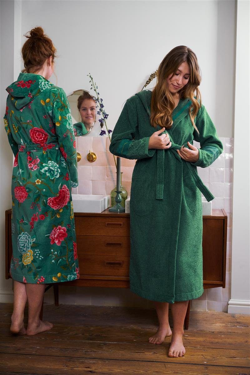 PiP Studio Bademantel Soft Zellige Bathrobe Green M Grün 100% Cotton, terry, 450 GSM M, Bademantel Damen und Herren Morgenmantel Frottee