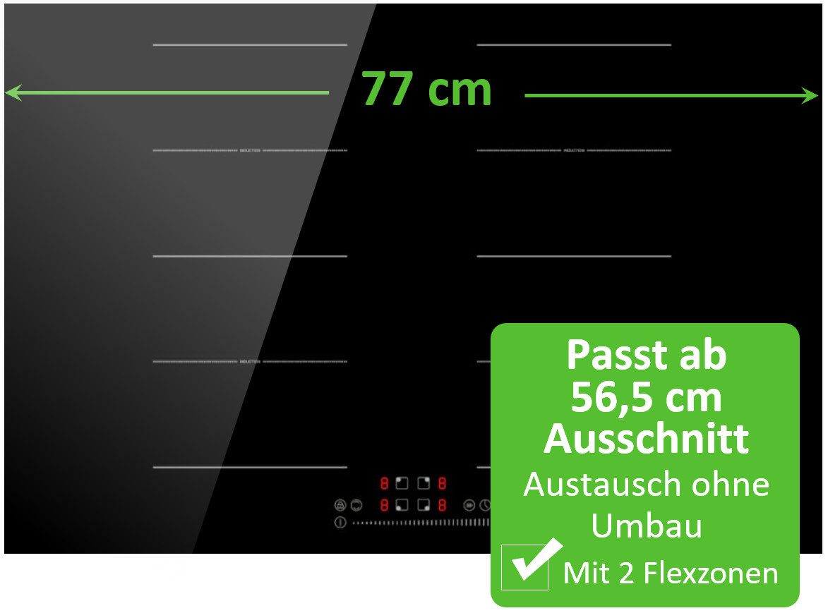 PKM IN77-2FZS Induktionskochfeld - 77 cm breit - 2 Flexzonen - passt ab 56,5 cm Ausschnitt - Austausch ohne Umbau