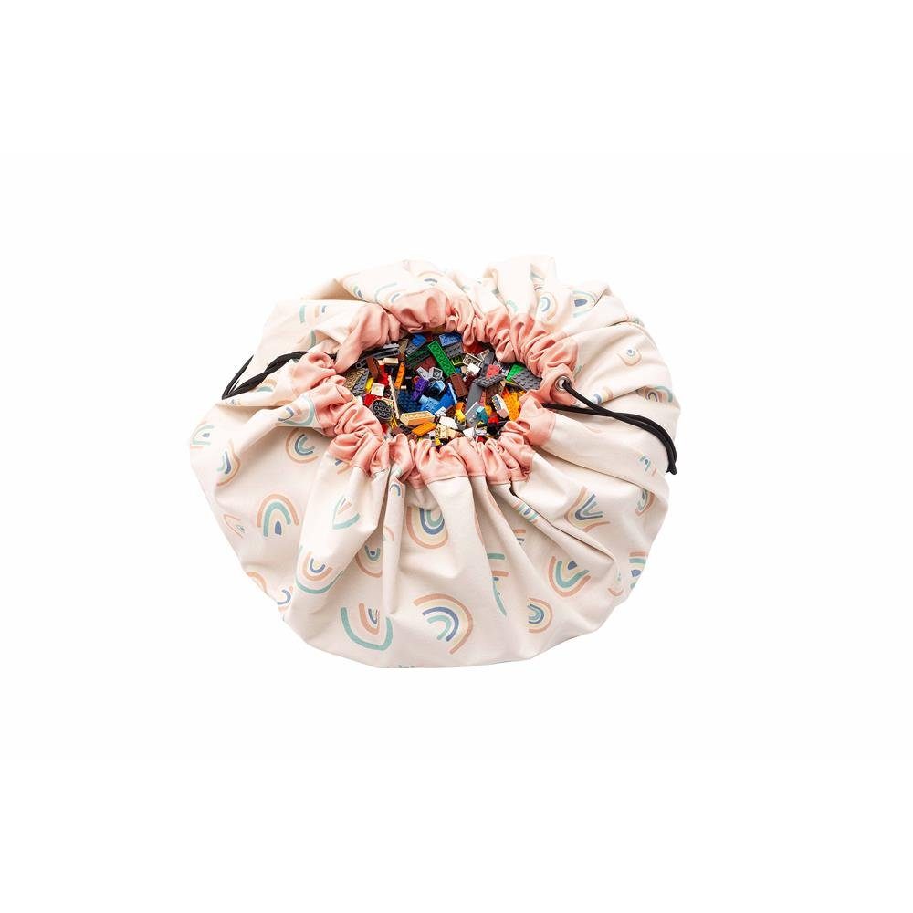 Die glücklichste Art, Spielzeug aufzuräumen und zu spielen: die Play&Go-Spielzeugaufbewahrungstasche mit Regenbogenaufdruck. Diese fröhliche Aufbewahrungstasche ist sehr leicht zu öffnen, um eine ganze Spielmatte zum Vorschein zu bringen. Ideal, wenn Sie Spielzeug während Ihres Aufenthalts, im Park und am Strand mitnehmen möchten. Dieser Aufbewahrungsbeutel für Spielzeug eignet sich auch perfekt für zu Hause, Sie können alle Spielsachen mit einem Handgriff aufräumen.