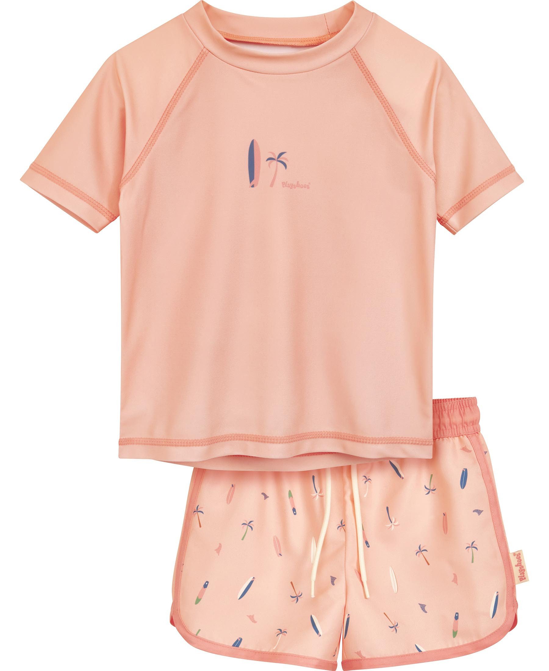 2-teiliges Bade Schwimmset aus recyceltem Polyester mit UV-Schutz 50+ für heiße Sommertage am Meer oder im Schwimmbad. Bade-T-Shirt und Badeshorts aus leichtem, schnelltrocknendem Material. Die Boardshorts hat einen Kordelzug und ein weiches Innenfutter aus Mesh. Kann auch prima seperat getragen werden beim nächsten Ausflug oder Stadtbummel.