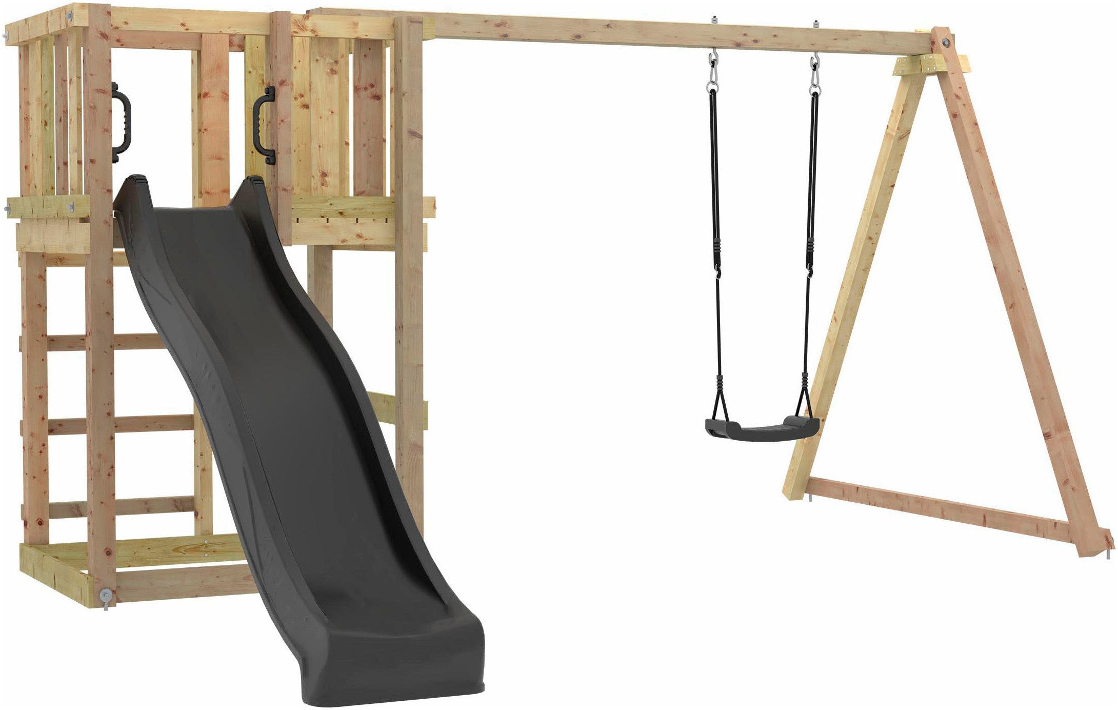 Spielturm »PLUS inkl. Schaukelanbau, grauschwarz Rutsche und Schaukelsitz«