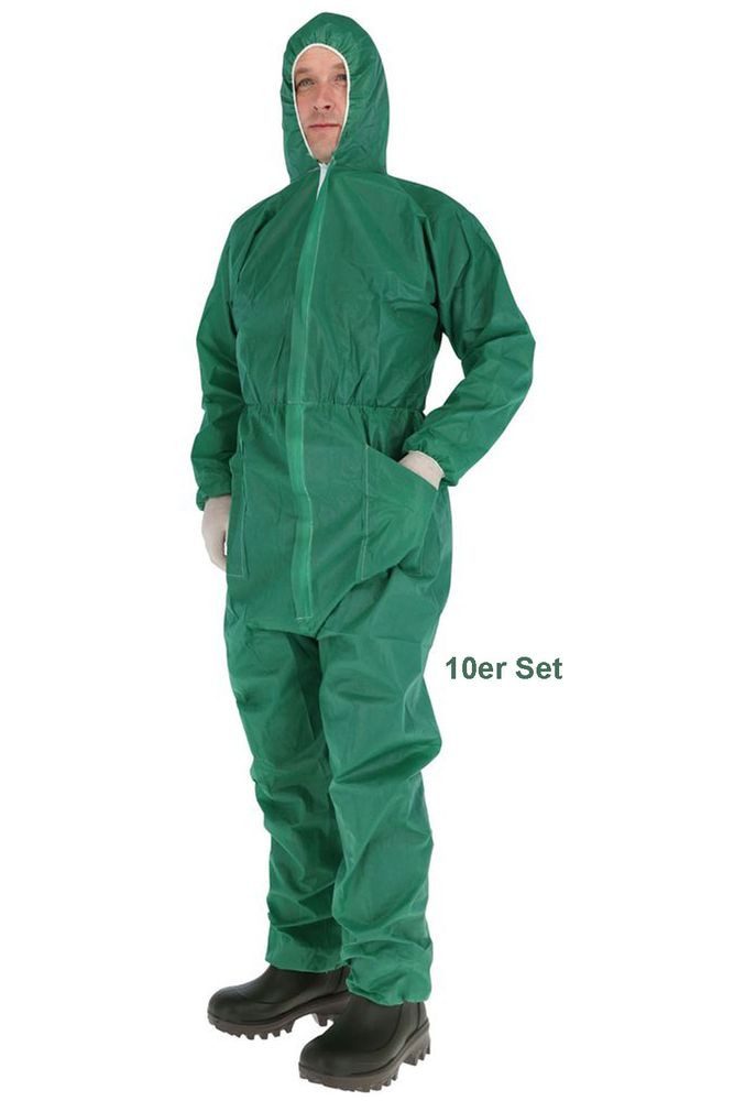 Der 10 Stück PP Einweg Overall in Grün, Größe XL bietet umfassenden Schutz und Komfort in verschiedenen Arbeitsbereichen. Ideal für den Einsatz in der Industrie, im Gesundheitswesen, der Lebensmittelverarbeitung oder im Bauwesen, schützt dieser Overall zuverlässig vor Staub, Schmutz, Spritzern und anderen Gefahren. Der leichte und zugfeste Materialmix aus Polypropylen gewährleistet einen hohen Tragekomfort und optimale Bewegungsfreiheit. Die Kapuze schützt den Kopf und die Haare, während der Reißverschluss eine einfache Handhabung ermöglicht. Gummizüge an Armen, Beinen und Taille sorgen für einen sicheren Sitz.