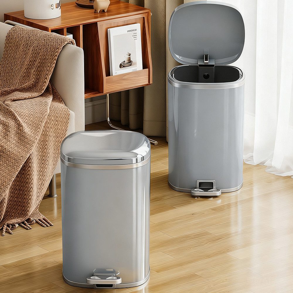 Dieser galvanisierte Treteimer verbindet praktische Funktionalität mit moderner Ästhetik. Seine glänzende, galvanisierte Oberfläche ist nicht nur leicht zu reinigen, sondern verleiht Ihrem Schlafzimmer, Wohnzimmer oder Badezimmer auch einen Hauch von Luxus. Das Herzstück dieses Produkts ist sein zuverlässiger Tretmechanismus: Das verbesserte, verbreiterte Pedal ist komfortabel und reaktionsschnell und öffnet den versiegelten Deckel sanft, sodass Sie den Behälter für eine bequeme und hygienische Müllentsorgung nicht berühren müssen. Der dichte Verschluss schließt Gerüche effektiv ein und verhindert deren Entweichen. Der integrierte Müllbeutel hält den Müllbeutel sicher und verdeckt ihn, sodass Unordnung unsichtbar bleibt. Ob für die tägliche Abfallentsorgung oder im feuchten Badezimmer – dieser Mülleimer ist eine durchdachte Wahl, die Ihre Lebensqualität steigert.