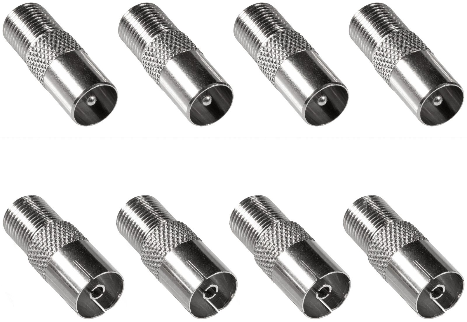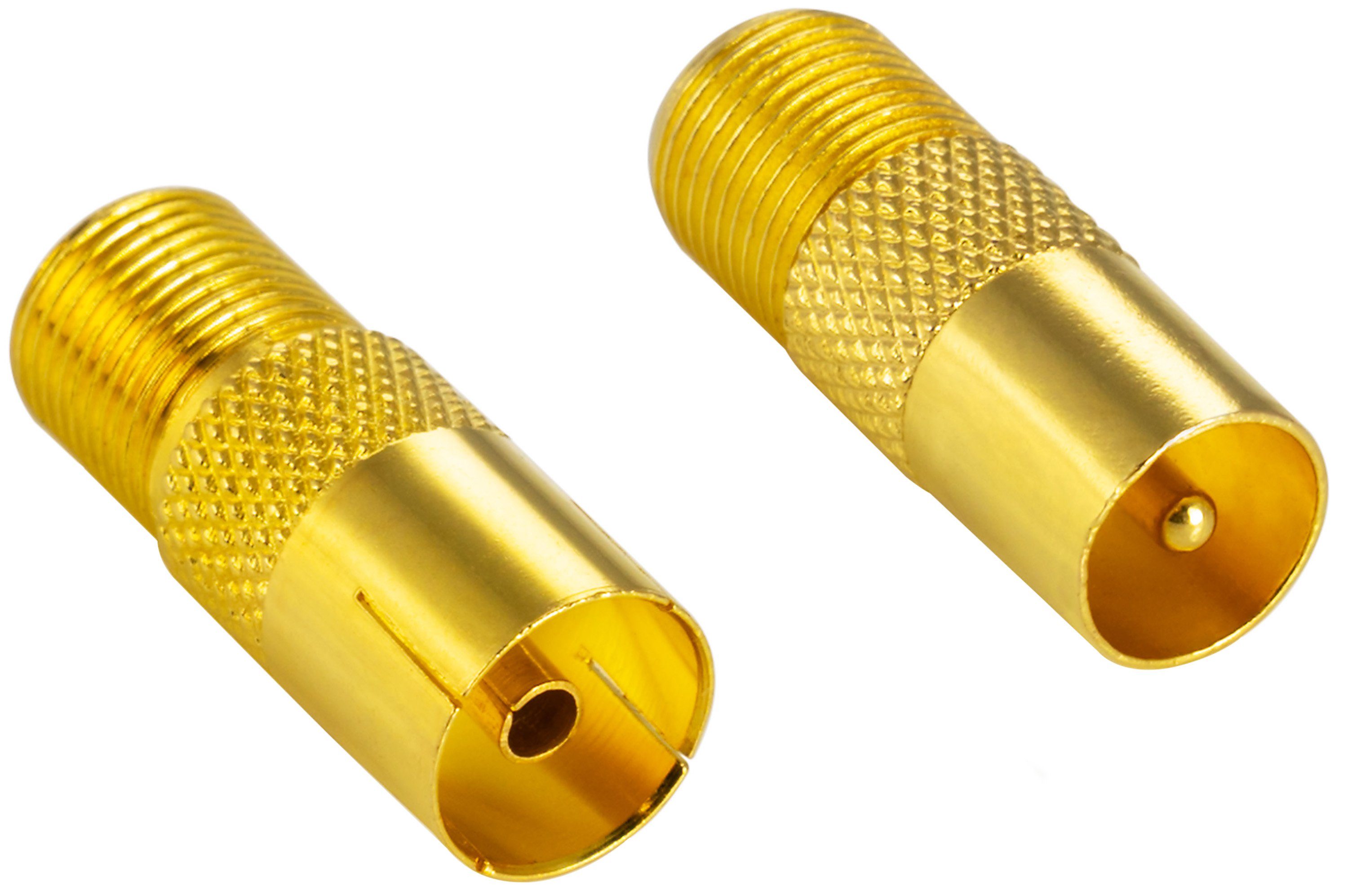 | Lieferumfang | 2 Adapter (1x F-Kupplung auf Koax-Stecker / 1x F-Kupplung auf Koax-Kupplung), silbern |