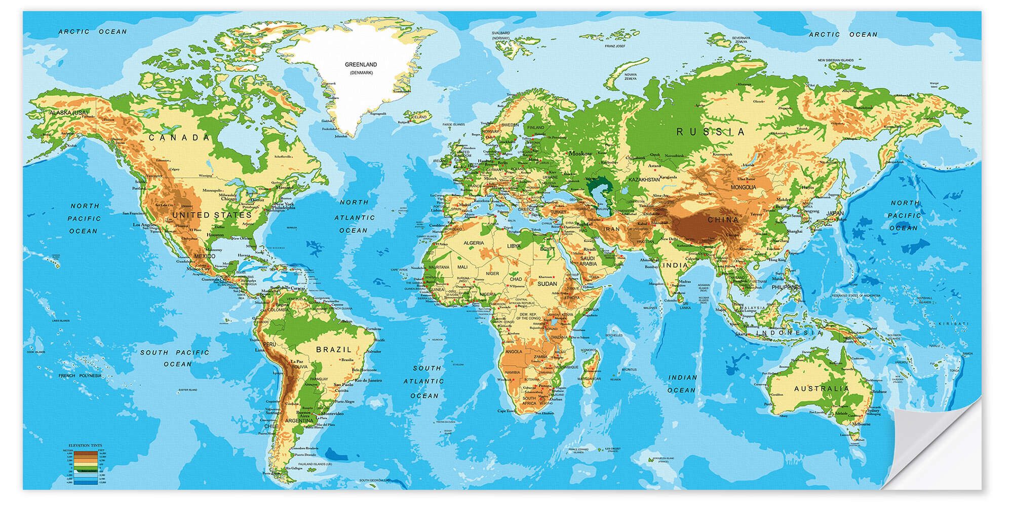 Ihr Wandsticker „Weltkarte (Englisch)“ (639562) von Editors Choice wird eigens für Sie in der hauseigenen Kunstdruckerei des Leipziger Kunstverlages Posterlounge hergestellt. Mit diesem farbenprächtigen und hochauflösenden Druck auf selbstklebender Folie (170 g/m²) können Sie den Look Ihrer Einrichtung in Nullkommanichts verändern, ohne zu Bohren oder zu Hämmern.
