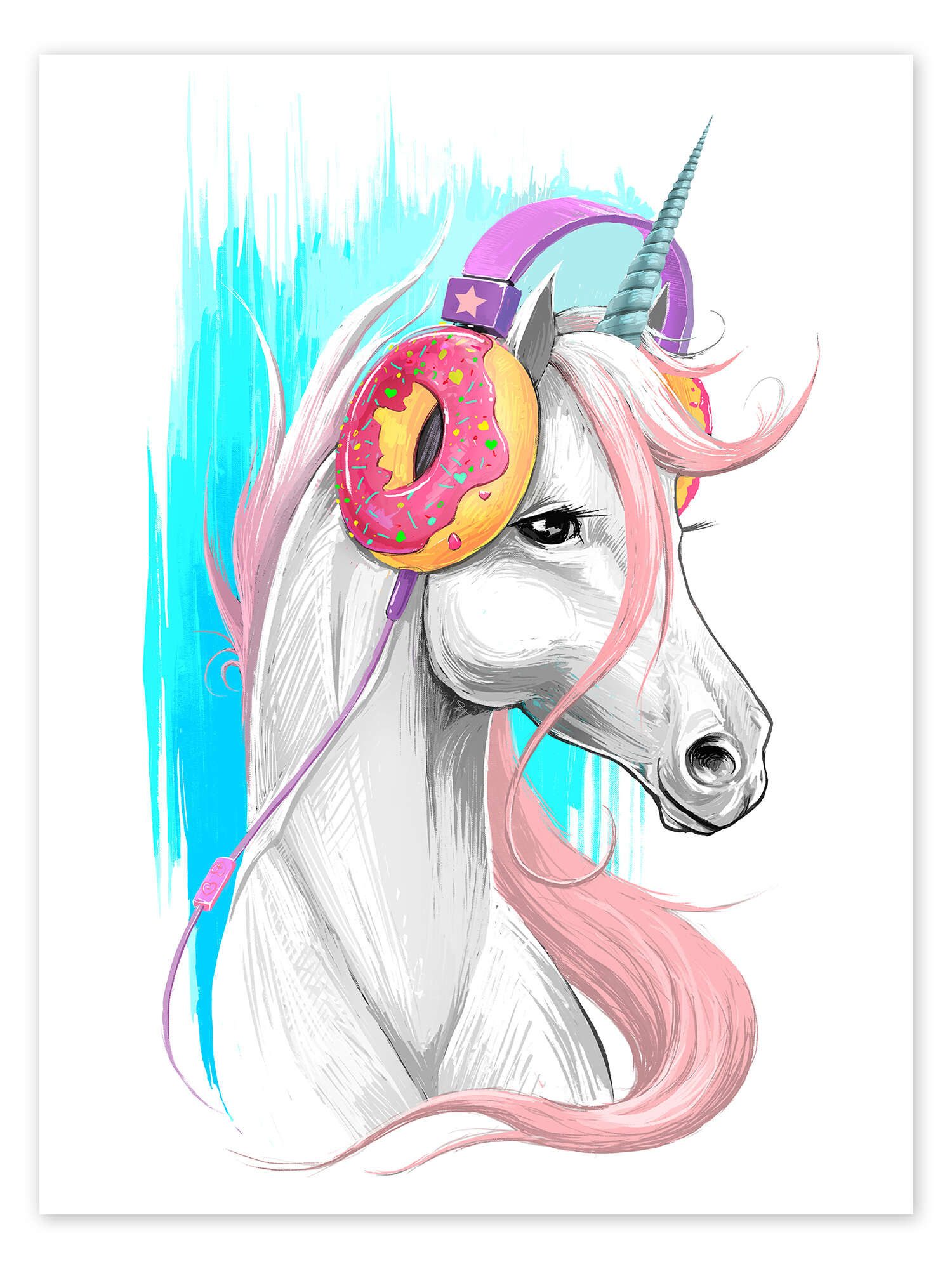 Das Poster „Einhorn mit Kopfhörern“ (679008) aus dem Sortiment des Kunstverlags Posterlounge wird Sie mit intensiven Farben und hervorragender Kunstdruck-Qualität begeistern. Der hochwertige, leicht glänzende Druck auf kräftigem Premiumpapier (250 g/m²) macht das Bild von Nikita Korenkov zu einem echten Hingucker für Ihr Zuhause. Durch den 3 mm breiten weißen Rand, der in allen Formaten inbegriffen ist, wird das Motiv hervorgehoben und wirkt besonders edel.