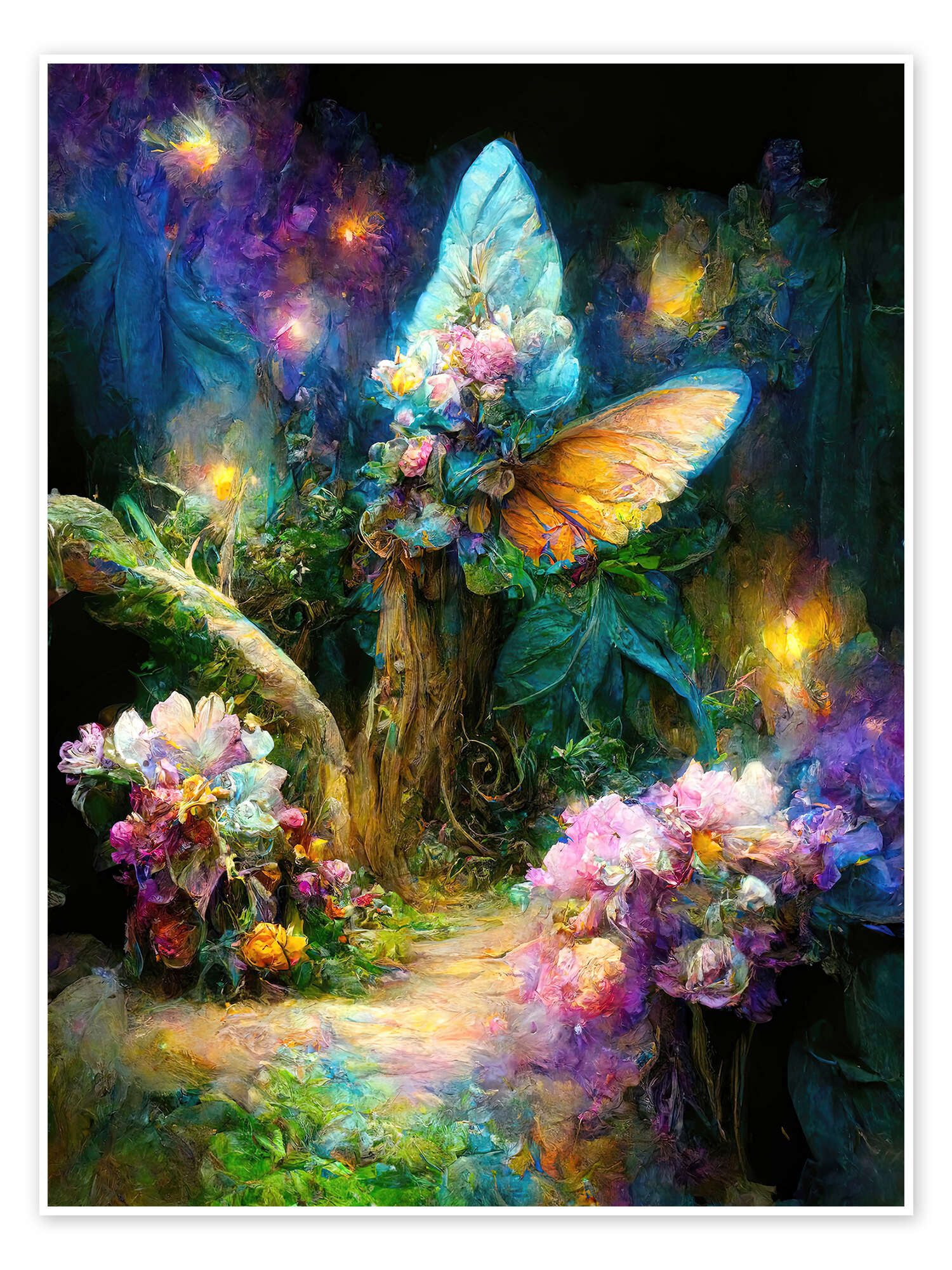 Das Poster „Zauberplatz im Feengarten“ (749100) aus dem Sortiment des Kunstverlags Posterlounge wird Sie mit intensiven Farben und hervorragender Kunstdruck-Qualität begeistern. Der hochwertige, leicht glänzende Druck auf kräftigem Premiumpapier (250 g/m²) macht das Bild von Dolphins DreamDesign zu einem echten Hingucker für Ihr Zuhause. Durch den 3 mm breiten weißen Rand, der in allen Formaten inbegriffen ist, wird das Motiv hervorgehoben und wirkt besonders edel.