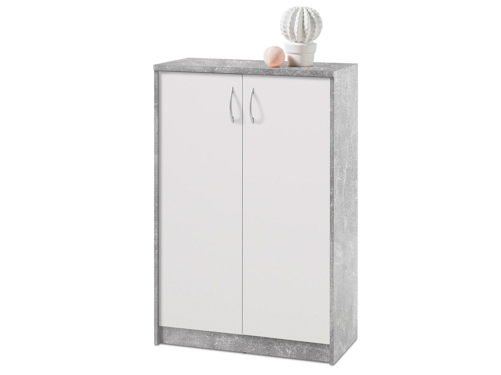 Die Kommode "Olli II" ist hier in moderner Beton Nachbildung gehalten, welche mit einer Front in klarem Weiß kombiniert wird. Dank dieser Farbgebung wird der Kommode eine frische und vor allem freundliche Ausstrahlung verliehen. Die Betonnachbildung ist qualitativ sehr hochwertig mit täuschend echter Struktur.