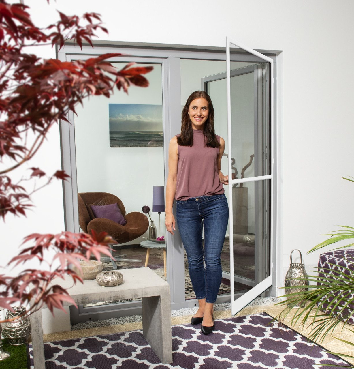 Primaster Insektenschutz: Premium Qualität zu erstklassigem Preis-Leistungs-Verhältnis in zeitlosem Design Die Premium Insektenschutztür für Balkon oder Terrasse schützt nicht nur zuverlässig vor störenden Insekten, sondern ist auch besonders gut durchdacht und komfortabel in der Nutzung. Das Fliegengitter ist aus reißfestem Fiberglasgewebe. Dieses ist sehr transparent, damit der Schutz vor Mücken, Fliegen, Wespen und anderen ungewollten Gästen nicht auf Kosten des Ausblicks geht. Erhältlich in weiß und in anthrazit. Robust. Das Aluminiumrahmensystem ist besonders robust. Einen entscheidenden Beitrag zur Stabilität leistet dabei auch das fix verschraubte Stoßprofil aus Aluminium. Es ist besonders verbindungssteif und trittfest – damit Sie, sollten Sie mal die Hände nicht frei haben, die Tür problemlos mit dem Fuß öffnen können. Gut durchdacht. Hinter Ihnen schließt sich die Tür dank der selbstschließenden Scharniere dann ganz sanft von alleine. Auch an barrierefreie Zugänge ist gedacht: die Insektenschutztür bleibt auch dann nicht hängen, wenn sie mit dem Boden abschließend montiert ist, denn die Scharniere heben die Tür beim Öffnen an. Die Tür verfügt auch über eine extra Bodendichtungsbürste – zusätzlich zur rundumlaufenden Dichtungsbürste – und schließt somit auch bei barrierefreien Zugängen nahtlos ab. So werden auch kriechende Insekten abgehalten. Passend. Damit die Insektenschutztür perfekt passt, lässt sie sich individuell kürzen. Die Ecken zur Schnittkantenüberdeckung sind dabei natürlich inkludiert. Im Rahmen sind Magnet-Schließer integriert, damit die Tür auch dann gut verschlossen bleibt, wenn es mal windig wird. Cleanes Design. Alle Schrauben und Verbindungen sind so harmonisch integriert, dass sie nicht sichtbar sind. Zum Öffnen mit der Hand gibt es eine komfortable, durchgehende, flächenbündige Griffschiene. Diese verfügt über einen Gewebeschutz, damit das Gewebe beim Öffnen nicht beschädigt wird. Die Primaster Insektenschutztür ist somit eine ansprechende und zuverlässige Wahl zum Schutz vor Insekten – und das ganz natürlich, ohne Chemie.