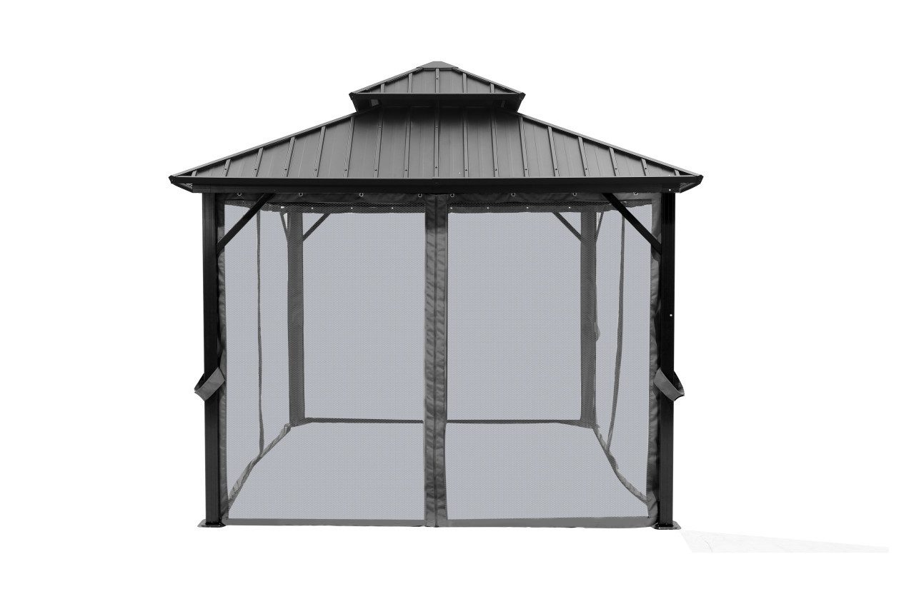 Produktdetails: 4 Moskitonetze | Material: 100 % Polyester | Maße: ca. 292 x 210 cm (L x H) | Farbe: grau | schützt vor Insekten | geeignet für Pavillon Colossus | Lieferumfang: 4 x Seitenteile inkl. Befestigungen | im Winter trocken lagern |