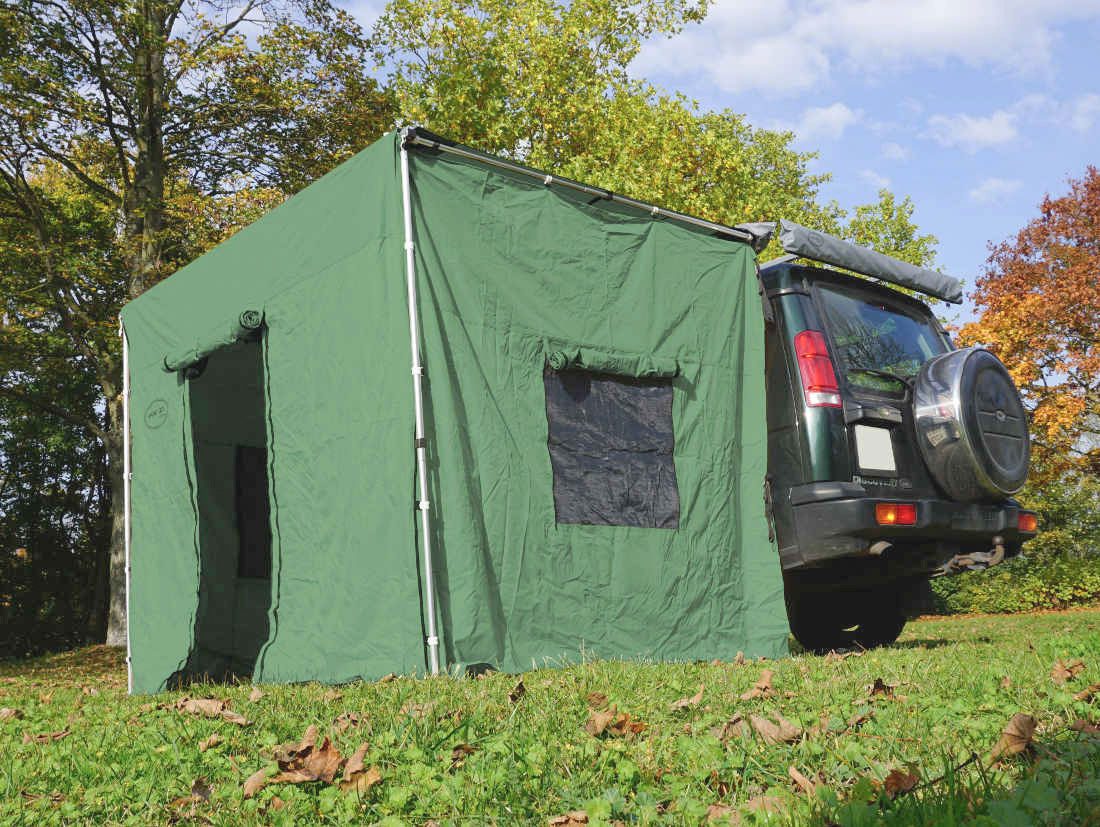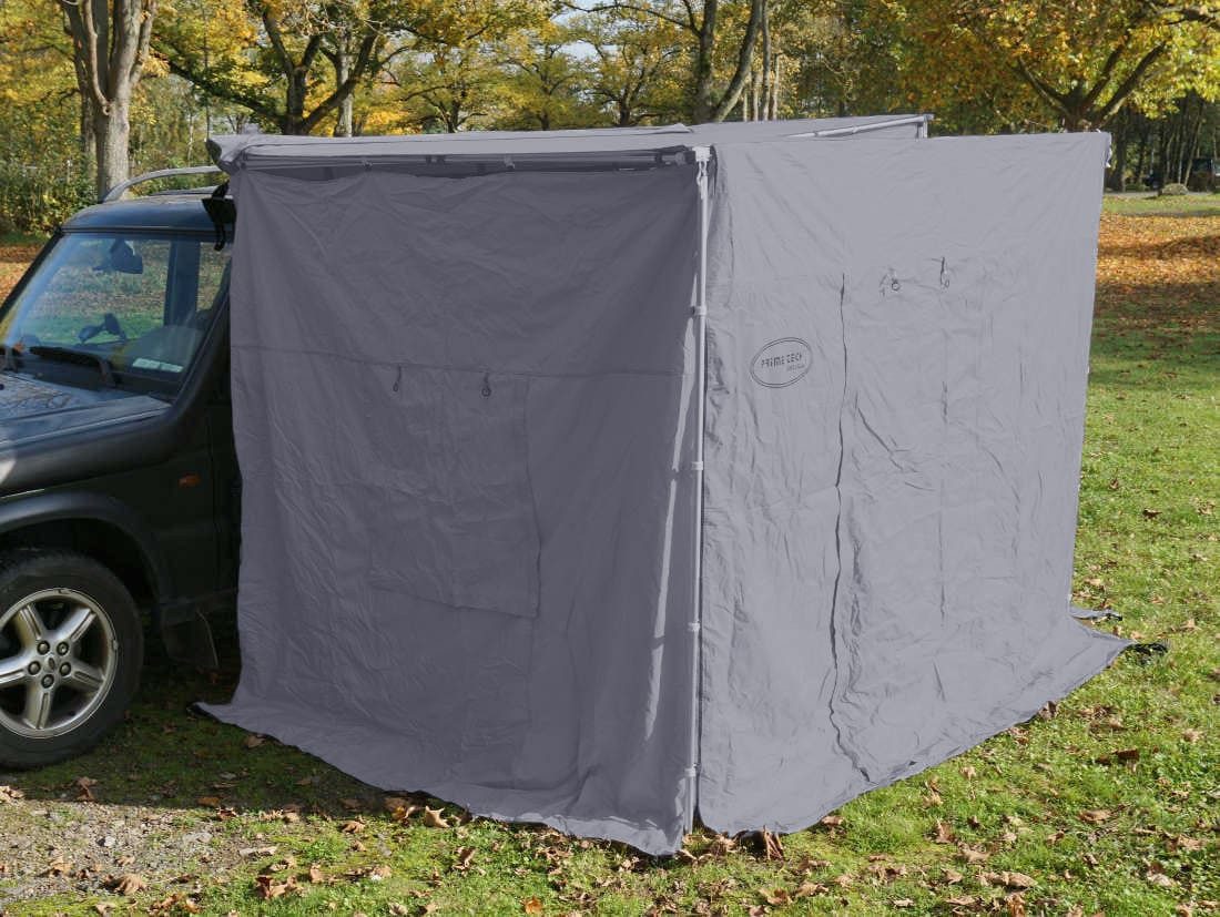 Unsere an die 200x200x210 cm große Markise für WASTELAND und EXTENDED montierbaren Seitenwände sind eine kostengünstige Erweiterung für Ihr Camp. Sie umfassen drei Seiten der Markise, sodass der Zugang zum Fahrzeug ungehindert möglich bleibt. Sowohl an den beiden Seitenfenstern als auch an der frontalen Eingangstür befinden sich Fliegennetze, die Sie vor lästigen Insekten bewahren. So schenken Sie Ihrem Camp mit wenigen Handgriffen einen neuen Raum, der Sie vor Wind und Nässe schützt.