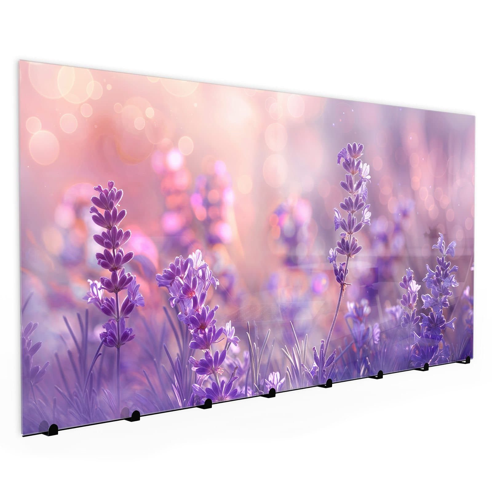 Primedeco Garderobenpaneel Kleiderhaken aus Glas Lavendeltraum (1 St., Inkl. Magnete, Stifte und Montagematerial), Magnetisch & Beschreibbar