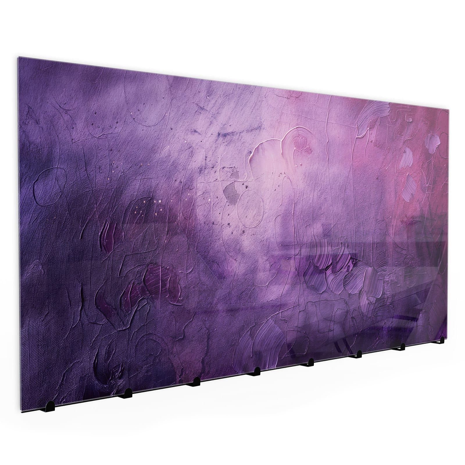 Primedeco Garderobenpaneel Kleiderhaken aus Glas Textur Mischung Lila (1 St., Inkl. Magnete, Stifte und Montagematerial), Magnetisch & Beschreibbar