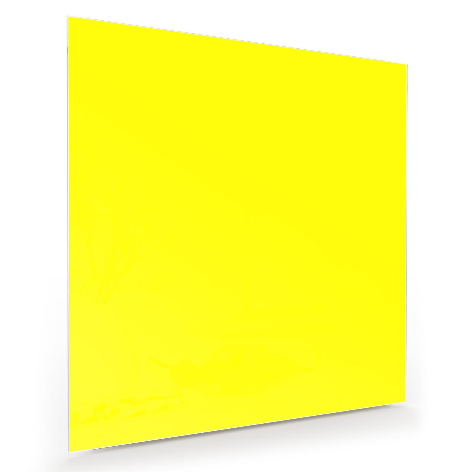 Primedeco Glasbild Wandbild Quadratisch Gelber Hintergrund II mit Aufhängung, Einfarbige Designs (21 verschiedene Größen, 1 St), Elegante Aufhängung