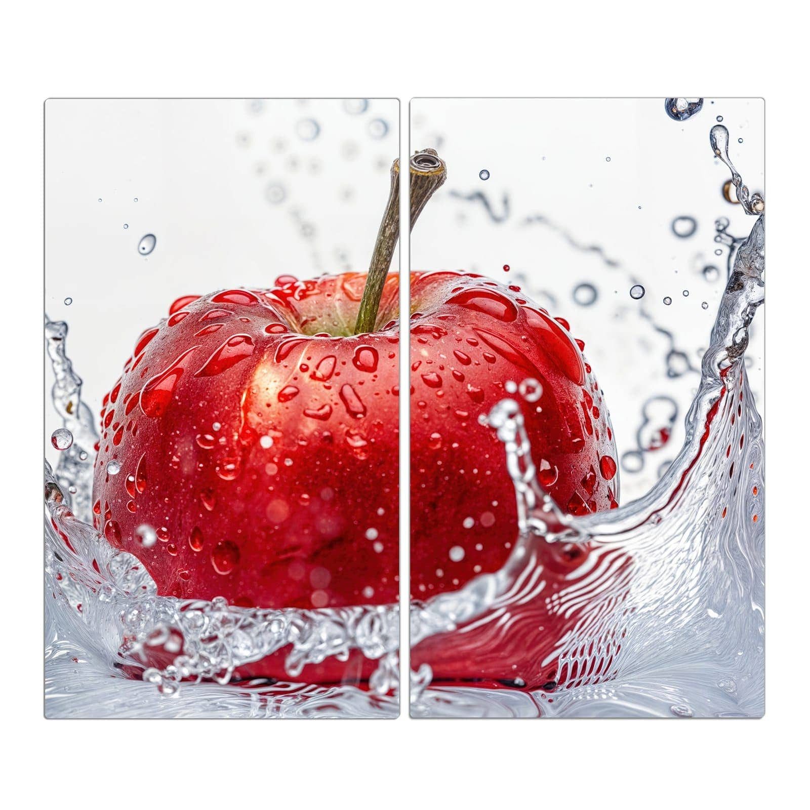 Primedeco Herd-Abdeckplatte Herdabdeckplatte Spritzschutz aus Glas Spritzender Apfel, Glas, (2 tlg)