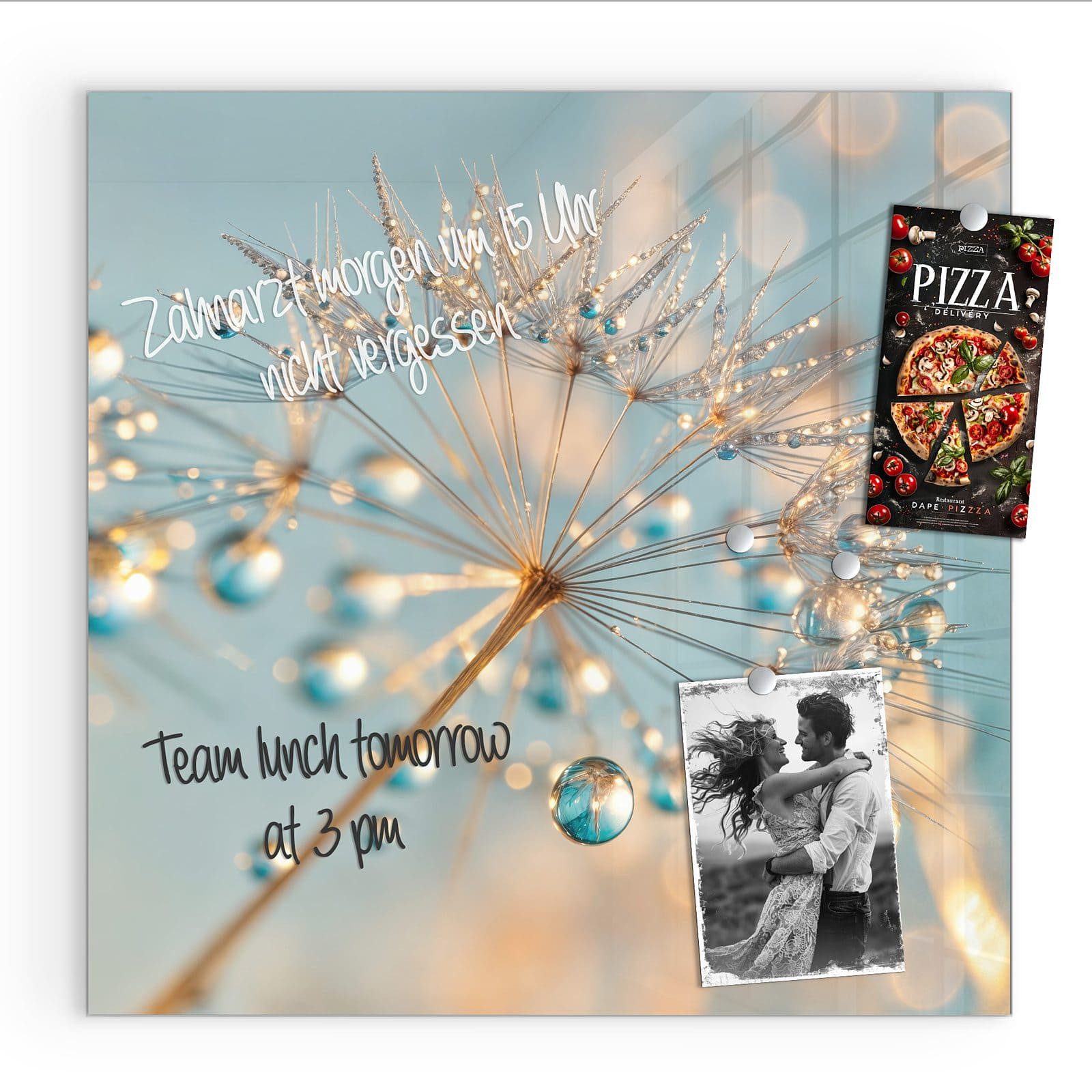 Mit einer Größe von 30x30 cm ist diese Magnetpinnwand mit dem Motiv Pusteblume Wassertropfen die ideale Lösung für Ihre Notizen, Fotos oder als dekoratives Element in Ihrem Zuhause. Die rückseitigen Ausbuchtungen sorgen für einen eleganten Schwebeeffekt, der den Raum optisch aufwertet.