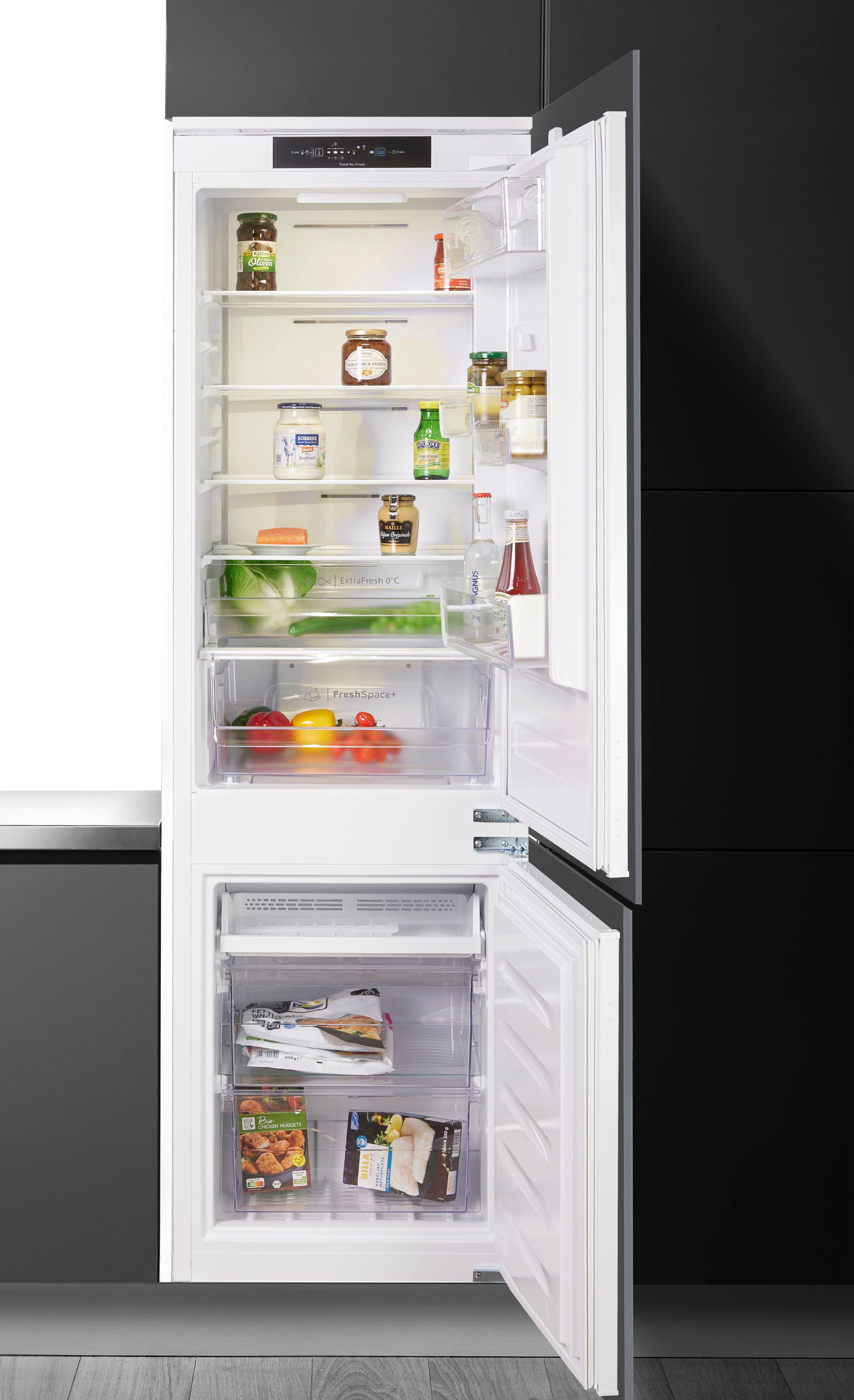 Die integrierbare Einbaukühlgefrierkombination »PCITN 18S3« ist von der Marke Privileg. Ausreichend Platz bietet das 54 x 177 x 54,5 cm (B/H/T) große Gerät mit seinen 68 l Gefriervolumen und 182 l Kühlvolumen. Das Betriebsgeräusch des Modells liegt bei 34 dB. Das Gerät besitzt zwei Gefrierschubladen. Die zwei Ablageflächen bieten viel Platz für Lebensmittel. Schnell griffbereit sind Lebensmittel in den vier Türablagen. Dank der LED-Innenbeleuchtung findet man ganz problemlos, was man sucht. Die »PCITN 18S3« von Privileg ist eine Einbaukühlgefrierkombination, die mit ihren Features überzeugt und genug Platz für Nahrungsmittel aller Art bietet.