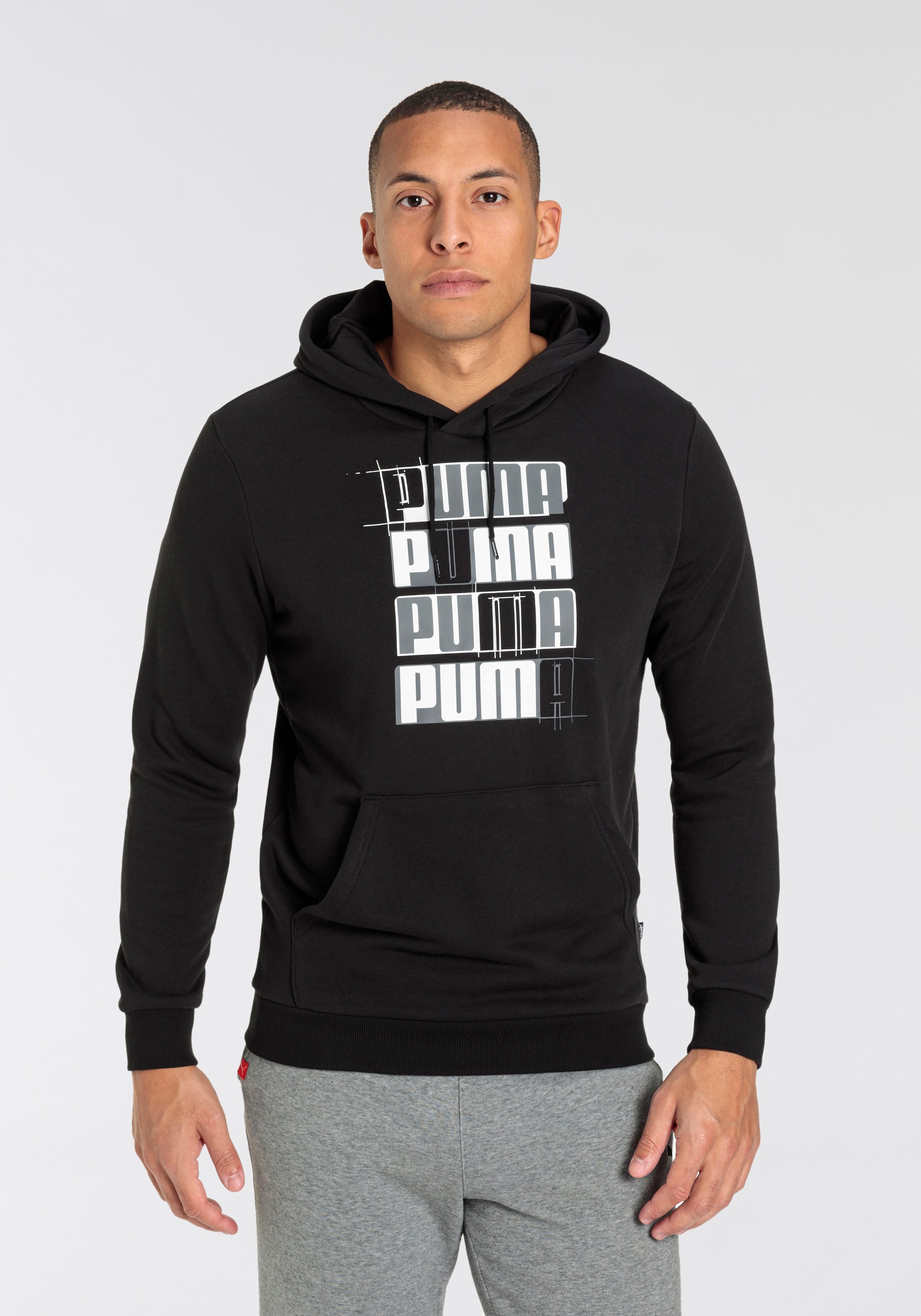 Bist du gerne sportlich unterwegs, dann ist das Kapuzensweatshirt »ESS+ LOGO LAB HOODIE TR« von PUMA genau das Richtige für dich. Durch den Print wirkt es lässig und peppig. Dieses Sweatshirt ist normal sowie basic geschnitten und umspielt deinen Oberkörper locker. Mit der Kängurutasche, die am Bauch aufgenäht ist, ist der bequeme Hoodie-Look komplett.