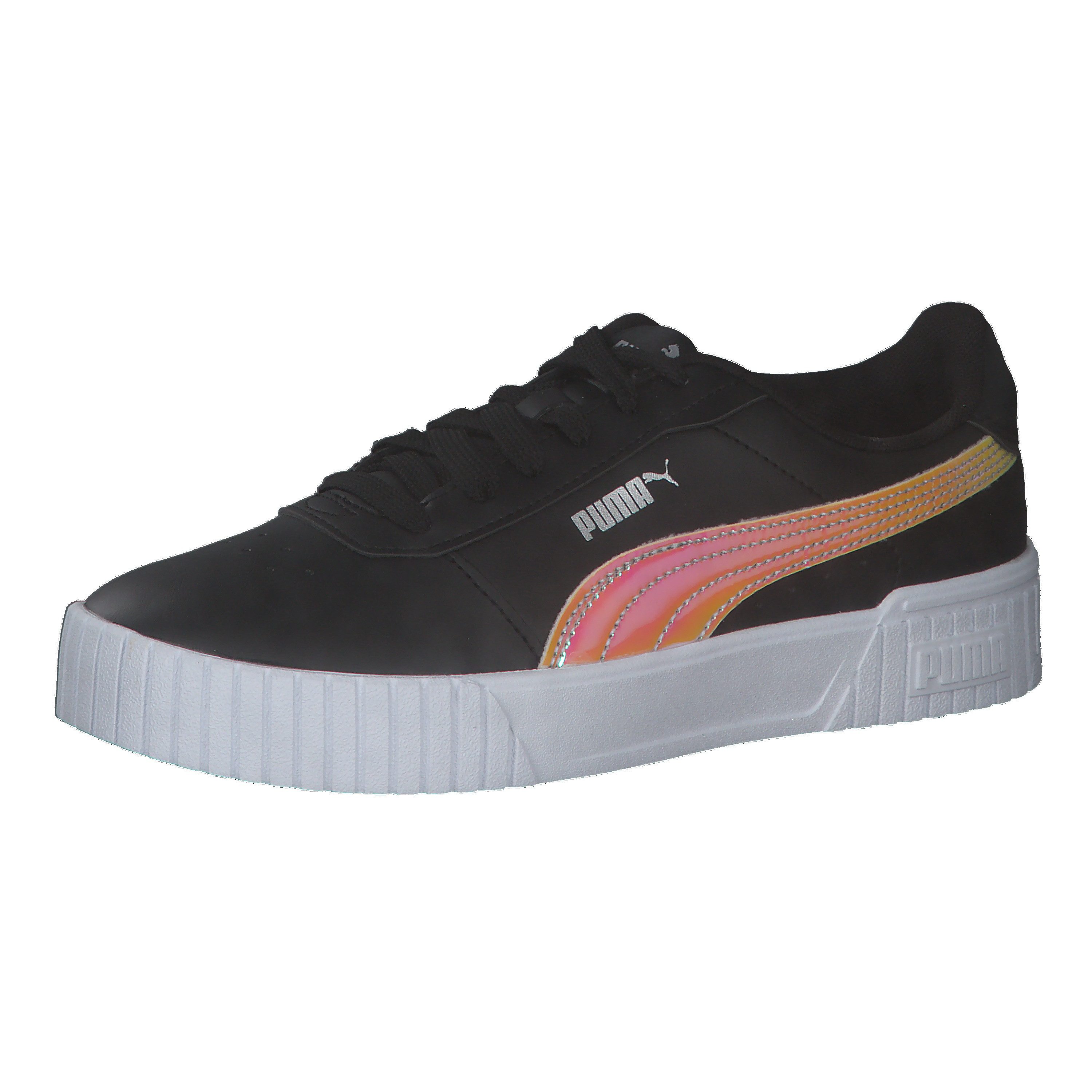Puma Mädchen Sneaker Carina 2.0 Holo Jr. In Anlehnung an das Design aus den 80er-Jahren hat das Carina 2.0 die entspannte Sneaker-Atmosphäre kalifornischer Strandstädte. Getreu seiner beliebten Tennis-Silhouette haben wir sie für die neue Saison aktualisiert: Breitere Linien an der Ferse und Perforationen am Schuhblatt sorgen für zusätzliche Kante und Energie, während das glänzende holografische PUMA-Branding garantiert für Aufsehen sorgt. Darüber hinaus bietet unsere SOFTFOAM+ Einlegesohle weiche Dämpfung und Komfort, damit du den ganzen Tag stilvoll bleibst. SOFTFOAM+: Step-in-Komfort-Einlegesohle, die dank der extradicken Ferse für eine weiche Dämpfung sorgt. Obermaterial aus Kunstleder und Zunge mit recycelten Materialien. Perforiertes Schuhblatt. Zwischensohle aus Gummi. Nicht abfärbende Gummilaufsohle. Textilfutter. Breitere vertikale Linien auf der Ferse. Silberfarbenes Metallic-Branding an Quartier und Ferse. PUMA Formstreifen als glänzende Holografie an Innen- und Außenseiten. PUMA Cat-Logo an der Ferse. Obermaterial: Sonstiges Material, Textil. Futter und Decksohle: Textil. Laufsohle: Sonstiges Material.