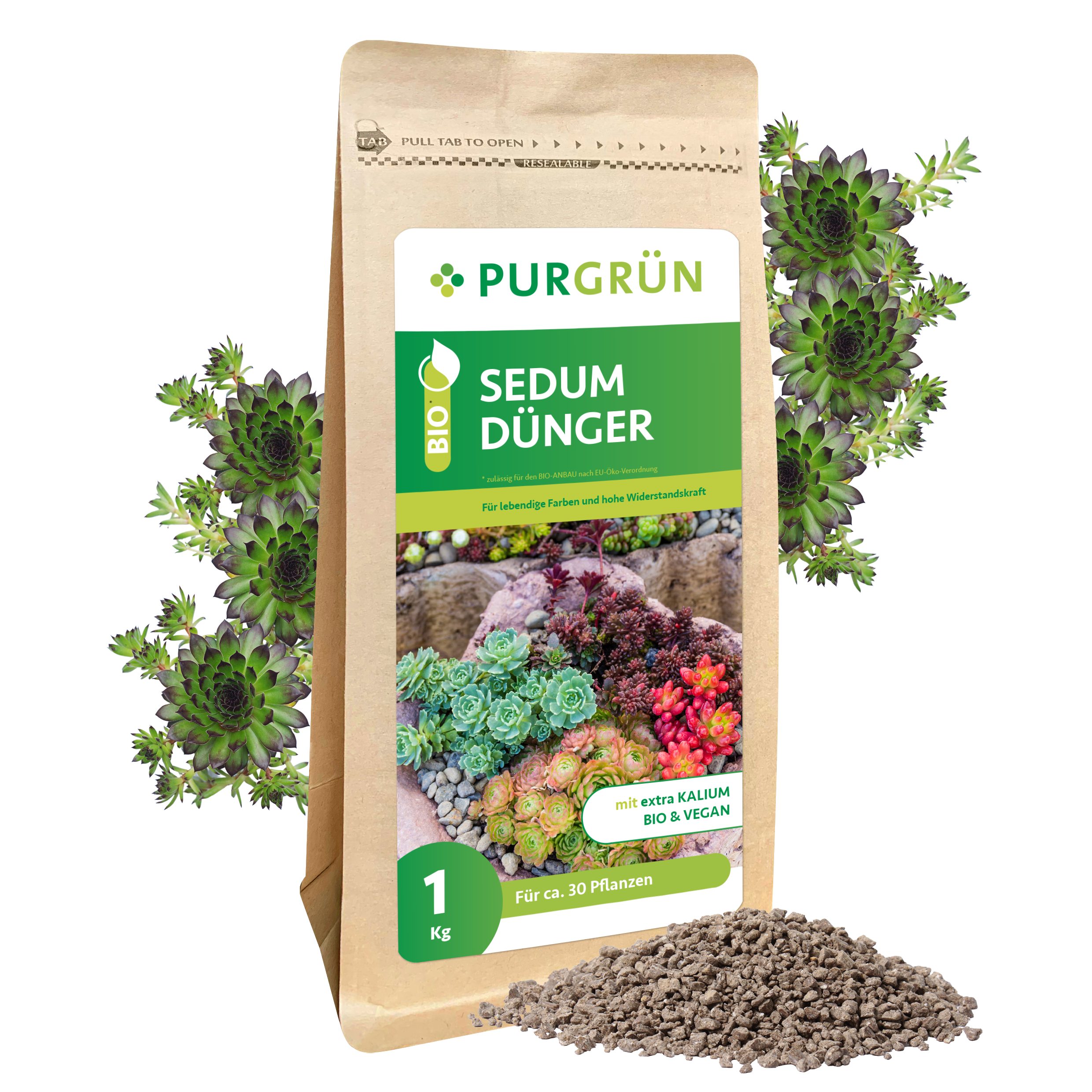 Der Purgrün Bio-Sedum-Dünger ist ein hochwertiger, organischer Spezialdünger, der perfekt auf die Bedürfnisse von Sedum-Pflanzen (Fetthennen) und anderen sukkulenten Stauden abgestimmt ist. Mit seiner natürlichen Rezeptur unterstützt er die Pflanzen nachhaltig bei einem kräftigen, kompakten Wachstum sowie bei der Bildung dichter, gesunder Blattrosetten.