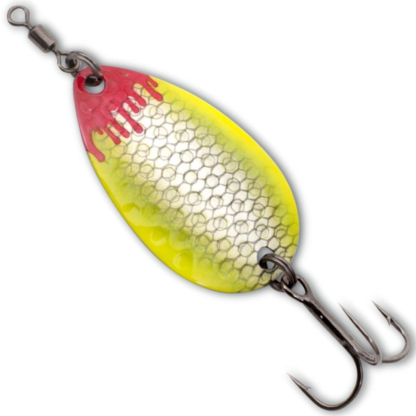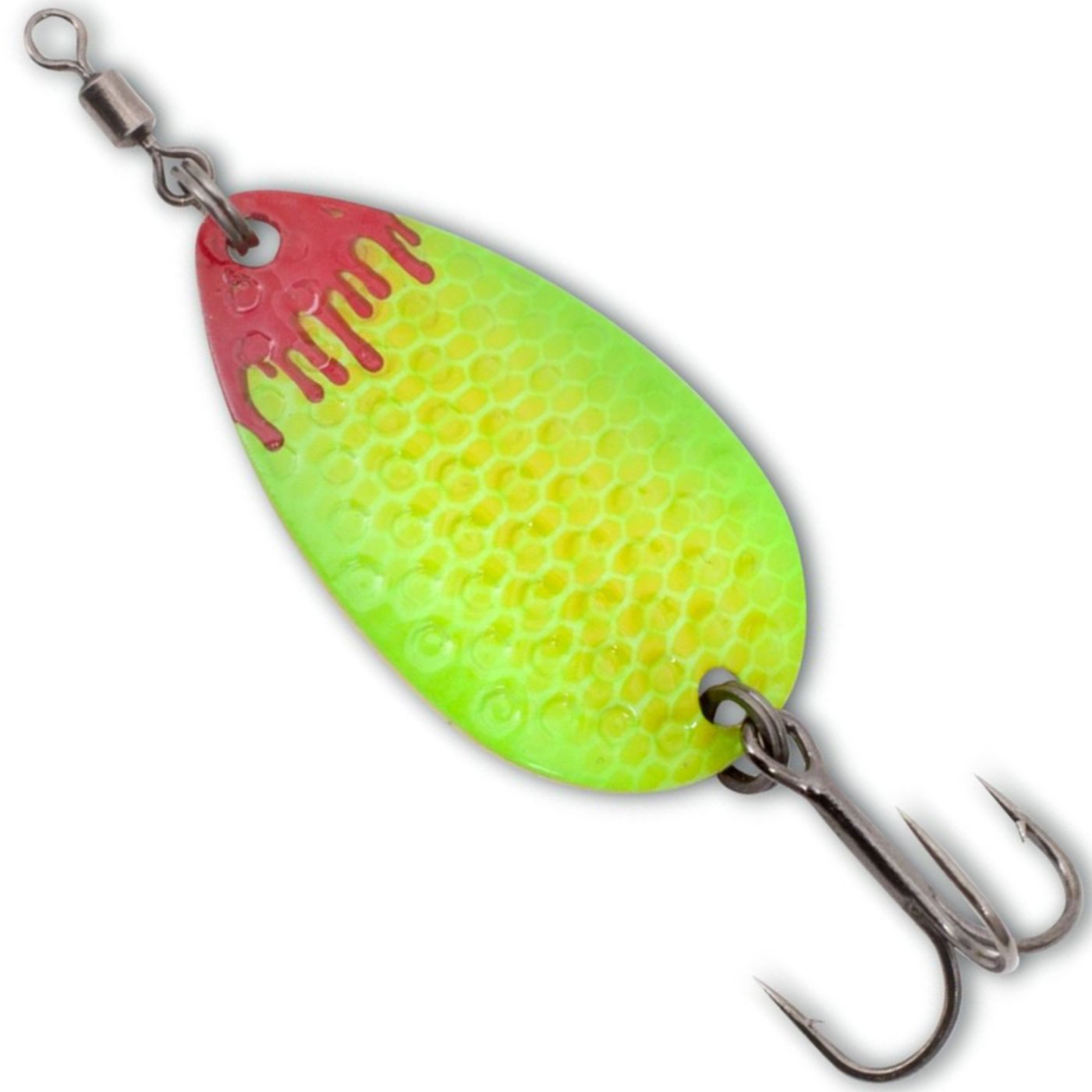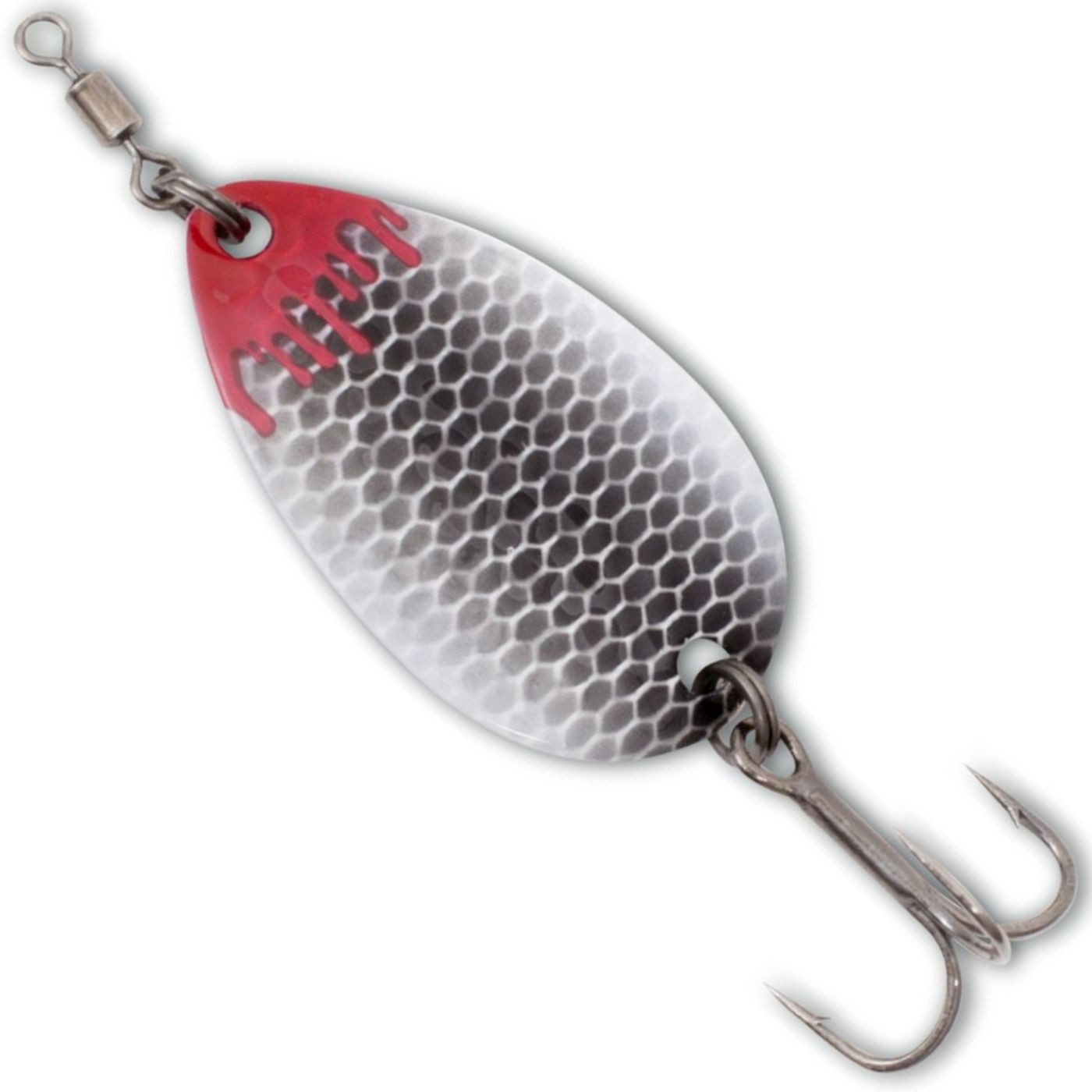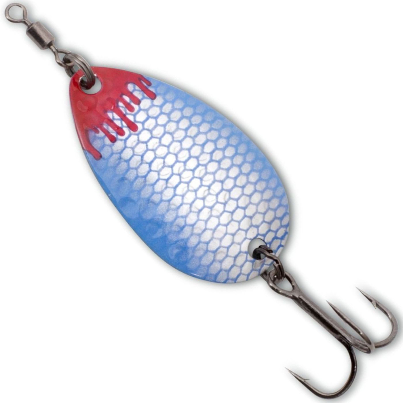 Quantum Magic Trout Blood Big Blade - Forellenblinker - Die Forellenköder von Quantum Magic Trout sind tolle Kunstköder zum Ultra Light Angeln an Forellenteichen und Forellenseen. Mit den Forellenblinkern lassen sich unter anderem sehr gut in Kombination mit einer leichten Spinnrute die Uferbereiche nach Salmoniden absuchen. Zusätzlich können die Forellenspoons zum Schleppangeln mit einer Bombarde eingesetzt werden, wodurch man den Spoonblinker auch auf sehr große Distanzen befördern kann. Der Kunstköder bietet aufgrund seiner breiten Form eine lange Absinkphase, in der er verführerisch taumelt. Die Spinnköder gibt es in verschiedenen tollen Dekoren, wodurch man die Möglichkeit hat, einen Forellenblinker für unterschiedliche Wassertrübungen und Beißverhalten auszuwählen.