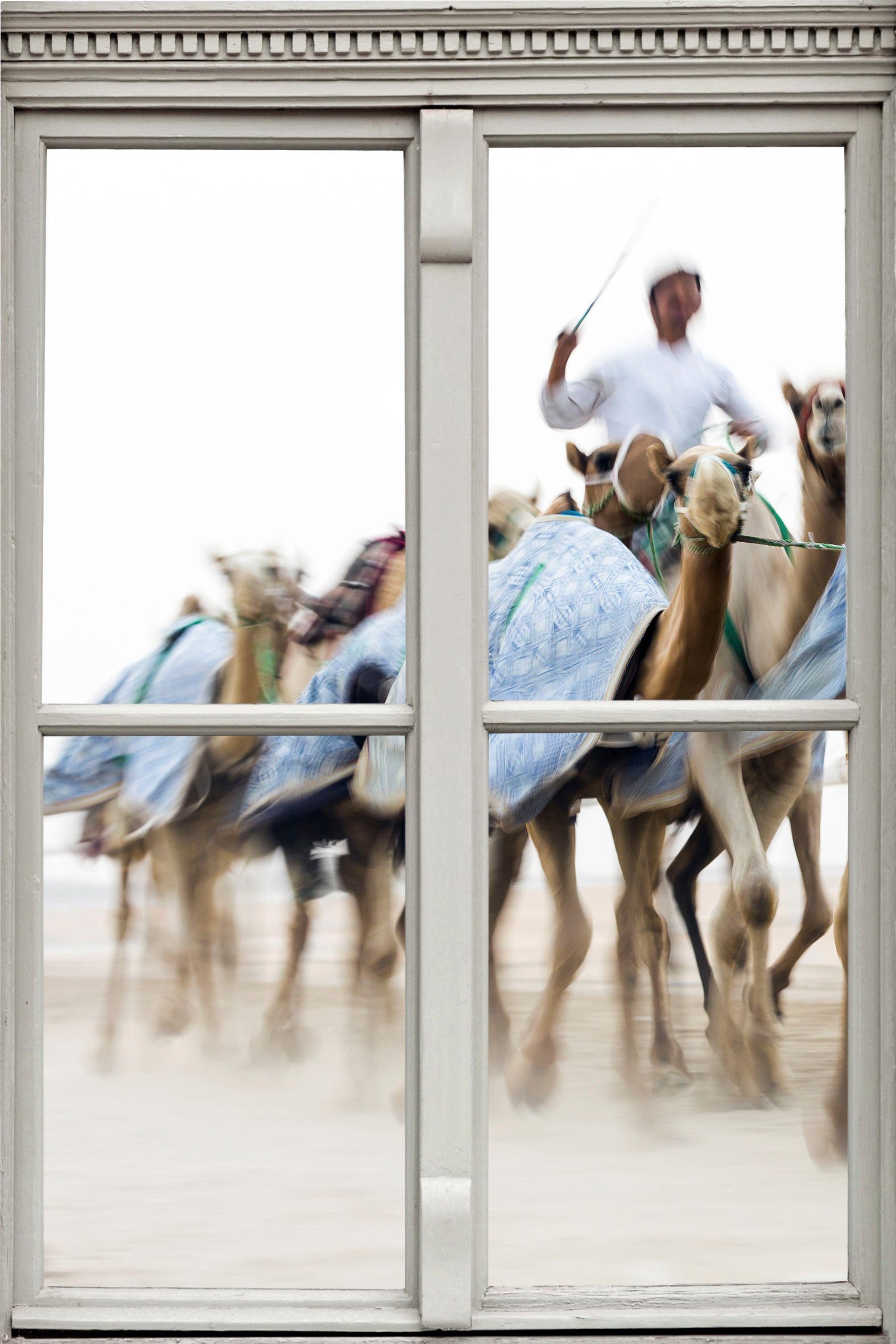 Bei dem Wandsticker »Kamelritt« von queence auf hochwertiger Folie handelt es sich um einen extravaganten Wandschmuck. Auf dem Wandtattoo ist ein Fenster zu sehen. Durch dieses ist eine Wüstenlandschaft zu sehen, durch die eine Kamel-Karawane reitet. Einige der Kamele schauen direkt zum Fenster und dem Betrachter ins Auge. Da das Motiv direkt auf eine selbstklebende Folie gedruckt wurde, lässt sich diese einfach und schnell an der Wand anbringen. Alternativ haftet die Wanddekoration auf Fliesen, Spiegeln oder Fensterscheiben. Der Wandsticker »Kamelritt« von queence auf hochwertiger Folie kann im gesamten Wohnbereich sowie in Küche und Bad eingesetzt werden.