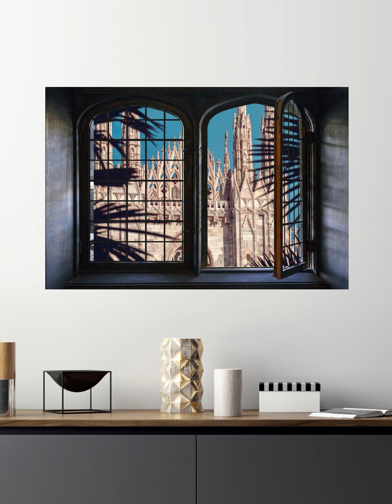 Der reißfeste Wandsticker »Spain« aus dem Hause queence überzeugt mit einem fantastischen Motiv. Er zeigt den Blick aus einem Fenster auf eine prächtige Kathedrale im gotischen Baustil. Sie hebt sich mit ihrem hellen Stein eindrucksvoll von einem strahlend blauen Himmel ab. Mit diesem Wandtattoo lässt sich eine ideale Illusion erzeugen. Es besitzt lebendige Farben und ist in hochwertiger Qualität angefertigt. Als Bildträger verwendet der Hersteller hochwertige selbstklebende Folie. Sie ist unkompliziert und schnell anzubringen. Glatte Untergründe wie Wände, Fliesen, Fenster, Bildschirme oder Spiegel dienen für eine direkte Befestigung. Mit dem reißfesten Wandsticker »Spain« aus dem Hause queence erhält jeder Raum eine geschmackvolle Bereicherung.