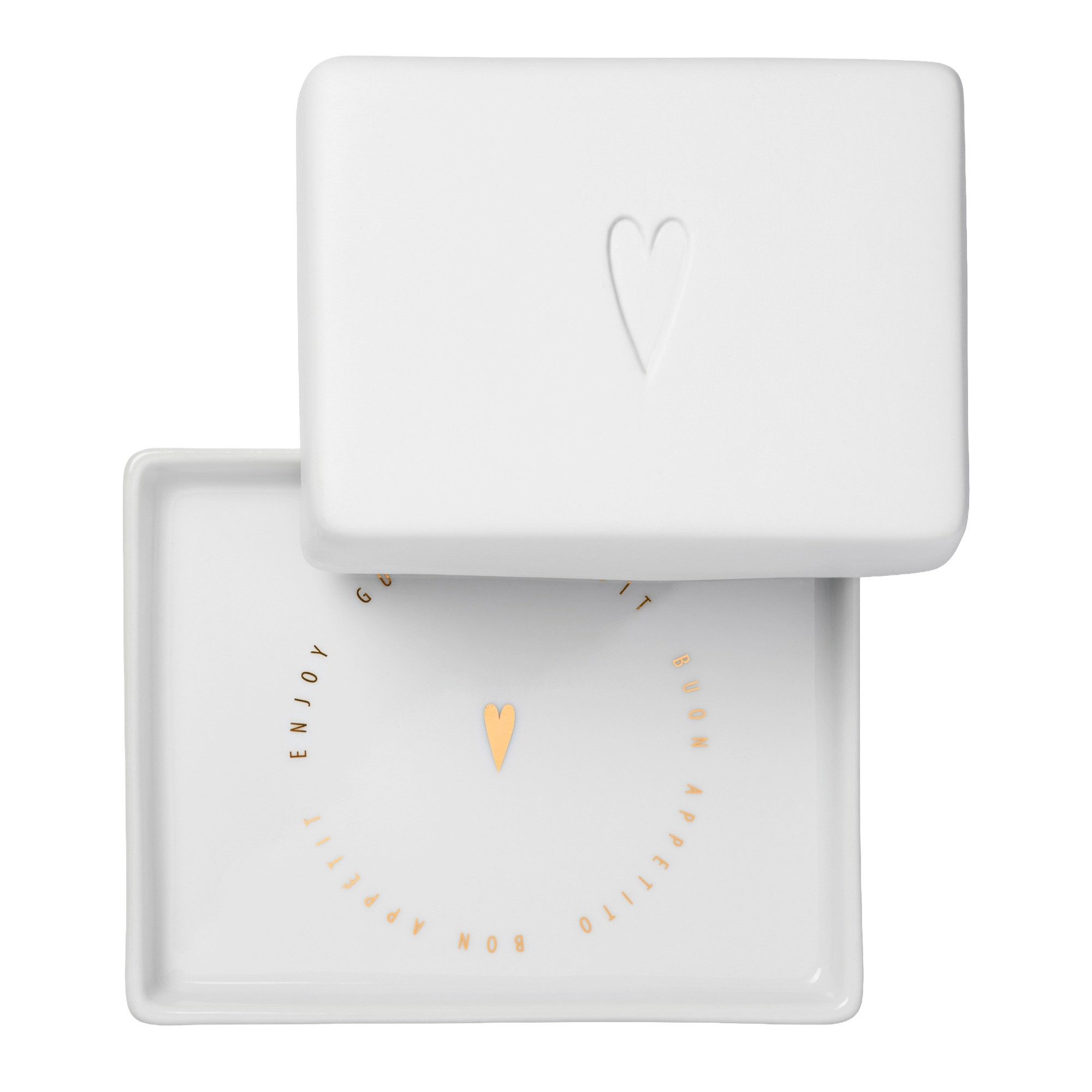 Die räder Kleine Butterdose Herz überzeugt mit einer schlichten und zugleich charmanten Gestaltung. Das weiße Porzellan mit goldfarbenem Herz setzt einen stilvollen Akzent und macht die Butterdose zu einem dekorativen Begleiter für den Alltag und besondere Momente.