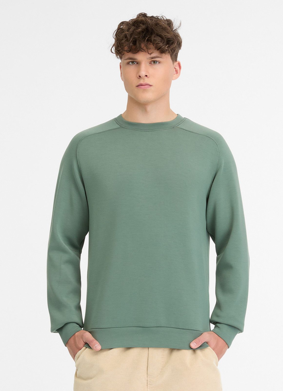 Dieser trendige Rundhalspullover hat einen entspannten, urbanen Style, der mühelos in jeden Kleiderschrank passt. Sein zeitloses Design macht ihn zu einem vielseitigen Begleiter, der sowohl zu Casual-Jeans als auch zu eleganteren Chinos eine gute Figur macht. Durch den besonderen Materialmix mit Modal und Elasthan ist er besonders bequem und dehnbar.