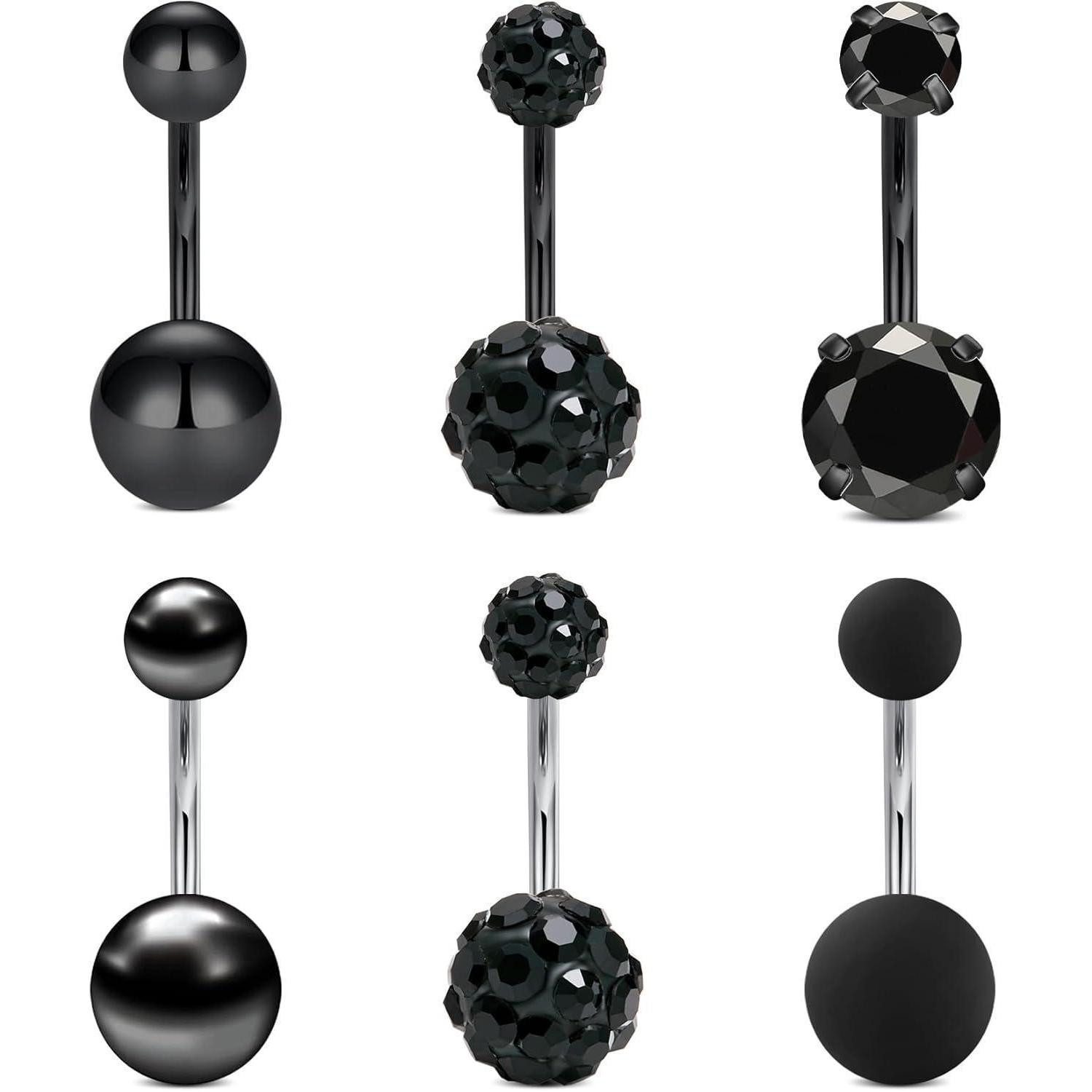 Die Größe des Piercings mit 14g Barbell und Bar Längen von 6mm, 8mm, 10mm, 12mm und 14mm passt den meisten Menschen. Das einfache Abschraub-Design ermöglicht ein problemloses Anbringen und Abnehmen des Schmucks. Jedes Set enthält 6 schwarze Bauchnabel-Stäbe mit funkelnden Diamanten und klassischem Design, was sie zu einer großartigen Wahl für sich selbst oder als Geschenk für einen geliebten Menschen macht.