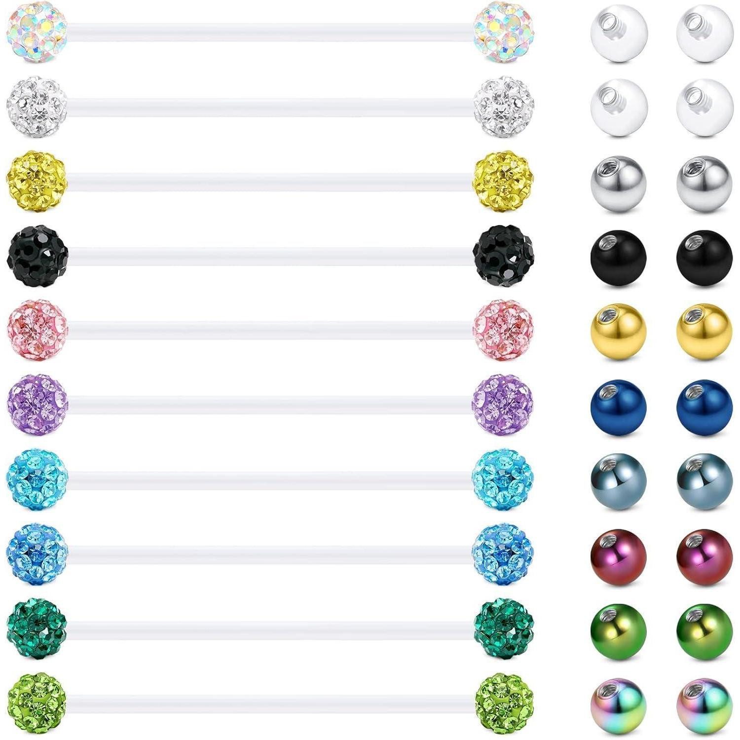 Anpassbare Länge: Es gibt 12mm, 14mm, 16mm, 18mm, 25mm, 32mm, 35mm und 38mm, Sie können eine klare Zungenleiste wählen, die perfekt zu Ihren Vorlieben und Ihrem Stil passt. Ob Sie einen kürzeren Stab für einen dezenten Look oder einen längeren für mehrere Piercings bevorzugen, es gibt eine Option, die Ihren Bedürfnissen entspricht.