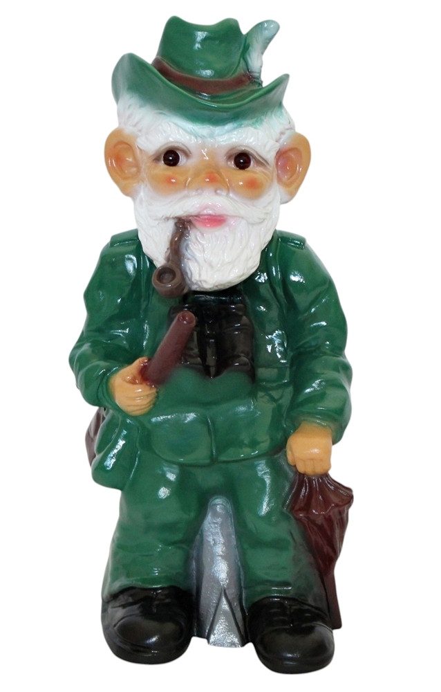 Produkt: Deko Figur Zwerg Gartenzwerg Gartenfigur stehend mit Flinge unter dem Arm, Tabakpfeife im Mund und Fernrohr um Hals Gartendeko für Außen- und Innenbereiche.