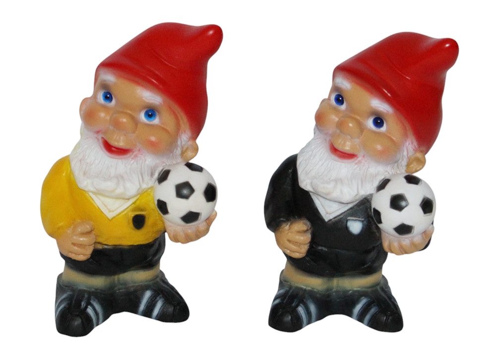 Set 2 Stück sortiert Gartenzwerge Dekofiguren Fußballer und Schiedsrichter Zwerge mit Fußbällen.