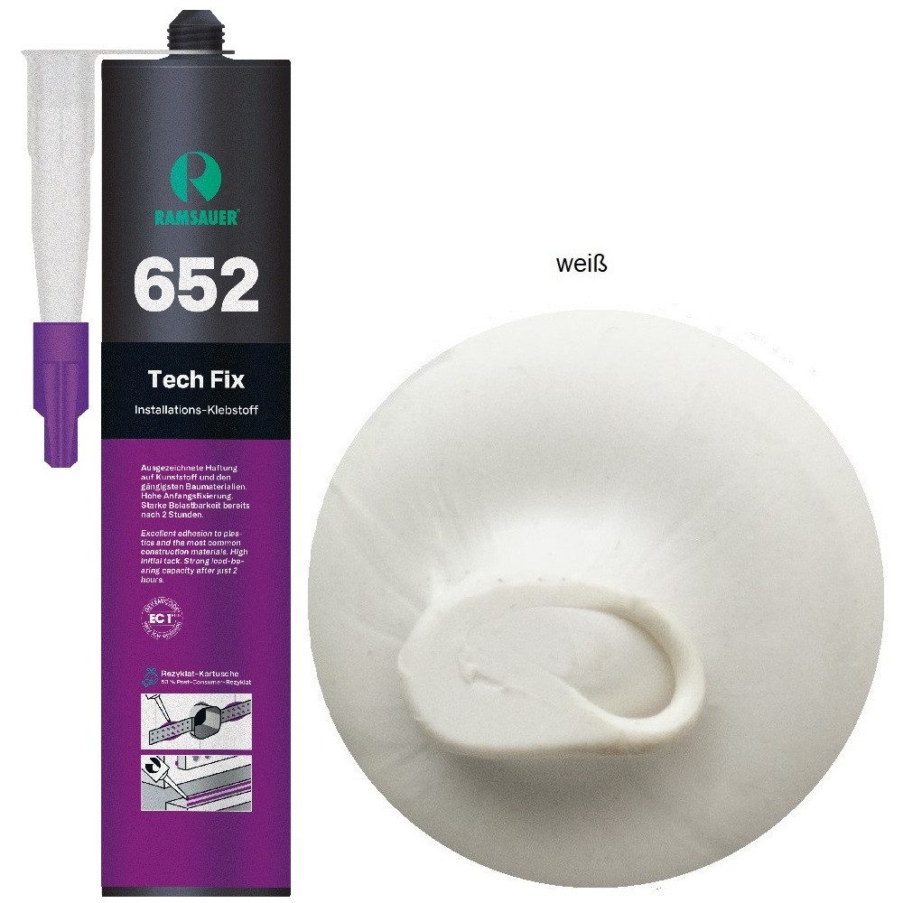 652 Tech Fix ist ein geruchsneutraler, silikonfreier und sofort gebrauchsfertiger Hochleistungsklebstoff mit schneller Anfangsfixierung und ausgezeichneten Zugscherfestigkeiten bereits nach 2 Stunden. Durch die speziellen Materialeigenschaften ist ein ökonomisches und sauberes Arbeiten garantiert. Das Produkt, zeigt hervorragende Haftung auf vielen Kunststoffen, Metallen, Beton, Ziegel, Naturstein, Mauerwerk und Holz (auch auf feuchten Untergründen). Durch die geruchsneutralen Eigenschaften unseres 652 Tech Fix kann unser Material sehr gut für Innenabdichtungen in bewohnten Bereichen verwendet werden.