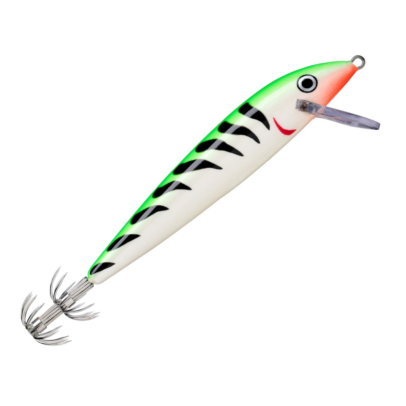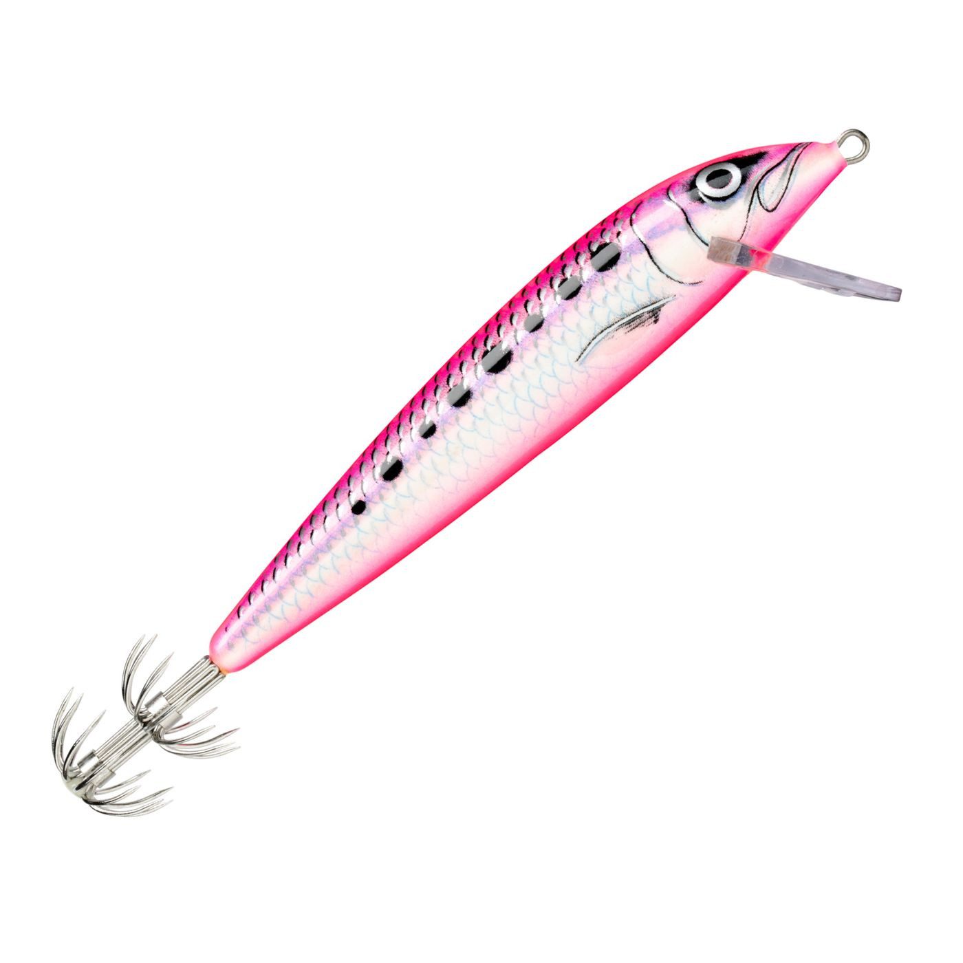 Rapala Countdown Squid - Der Countdown Squid von Rapala ist ein sinkender Wobbler, speziell für das Fischen auf Tintenfisch und Octopus. Der Deep Squid erreicht dank seiner großen Tauchschaufel schnell die gewünschte Tiefe und lockt Tintenfische aus ihren Verstecken entlang von Felsvorsprüngen hervor. Dank des doppelten Hakenkranz mit 2x12 geschärften Spitzen hängen Tintenfisch sicher und können sich nicht lösen. Besonders bei niedrigen Geschwindigkeiten eignet er sich für das Schleppfischen und läuft in etwa 3 Metern Tiefe, lässt sich mit der Countdown-Methode aber in Variabler Tiefe präsentieren.