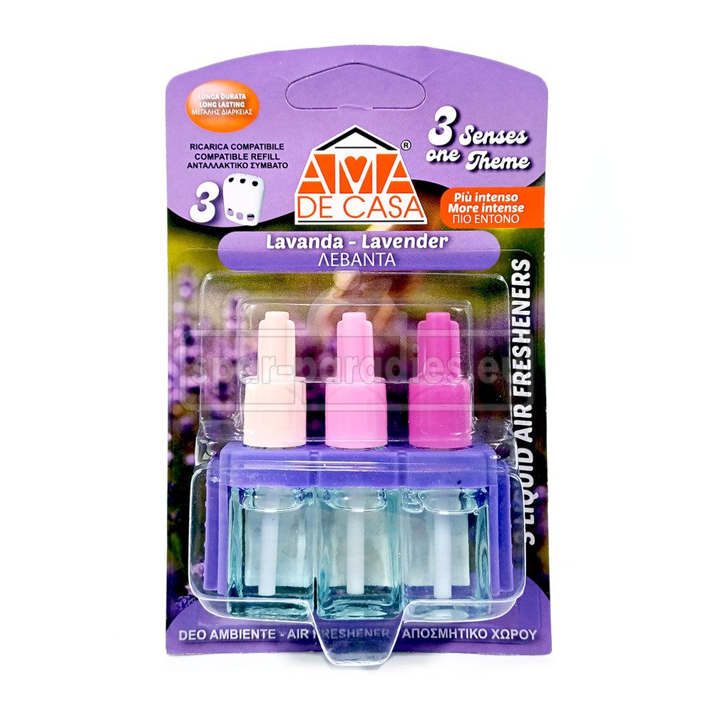 Der Ama de Casa 3Sense Nachfüller Lavendeltraum ist mit den 3Volution Duftsteckern von febreze und ambi pur anwendbar und eine günstige Alternative zu den original Nachfüllflakons. Legen Sie einfach den Nachfüllflakon Lavendeltraum von Ama de Casa in Ihren febreze / ambi pur 3Volution Duftstecker und genießen Sie einen beruhigenden Wohlfühlduft nach frischem Lavendel.