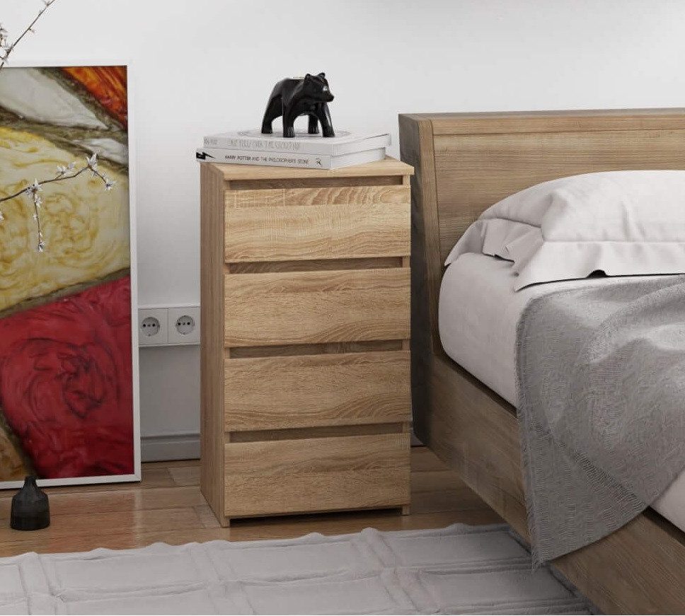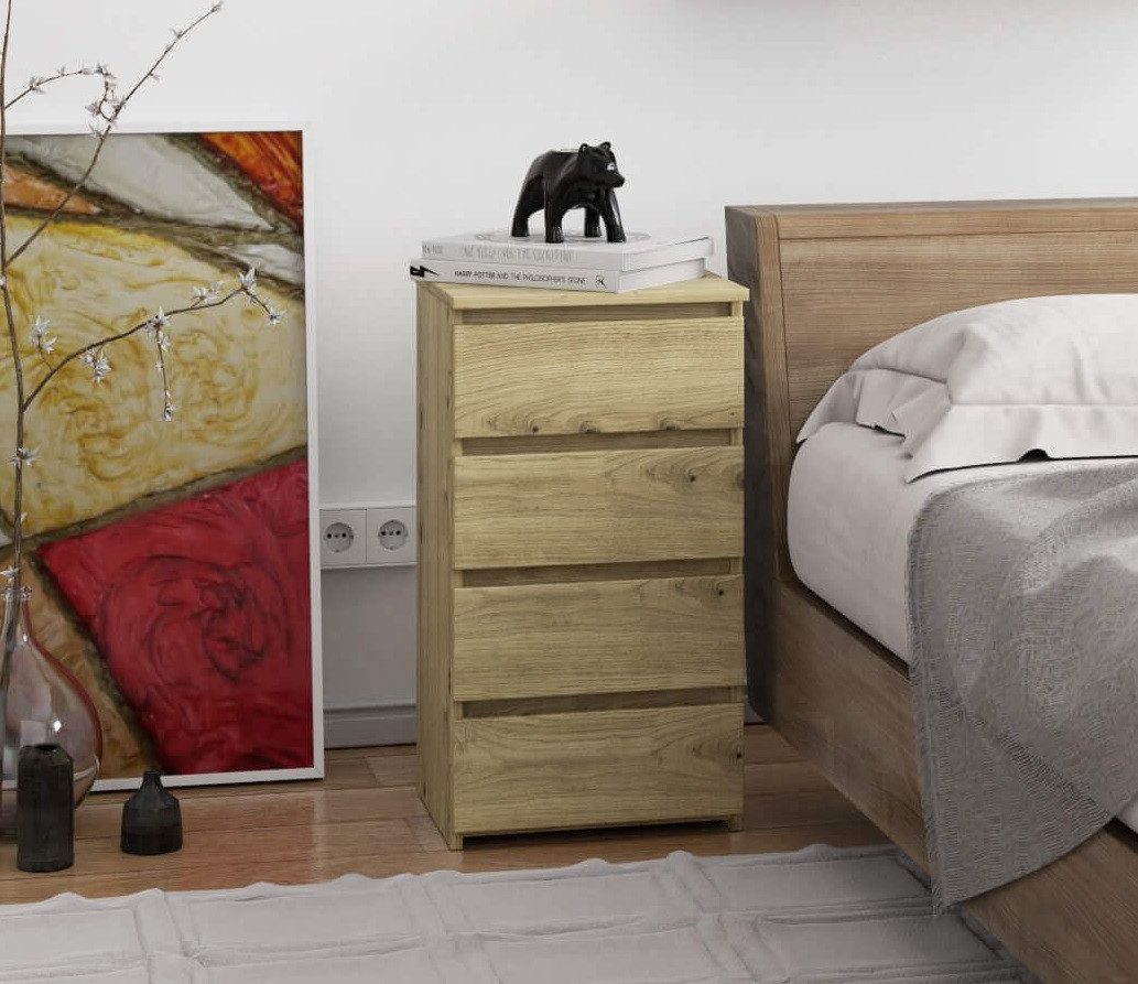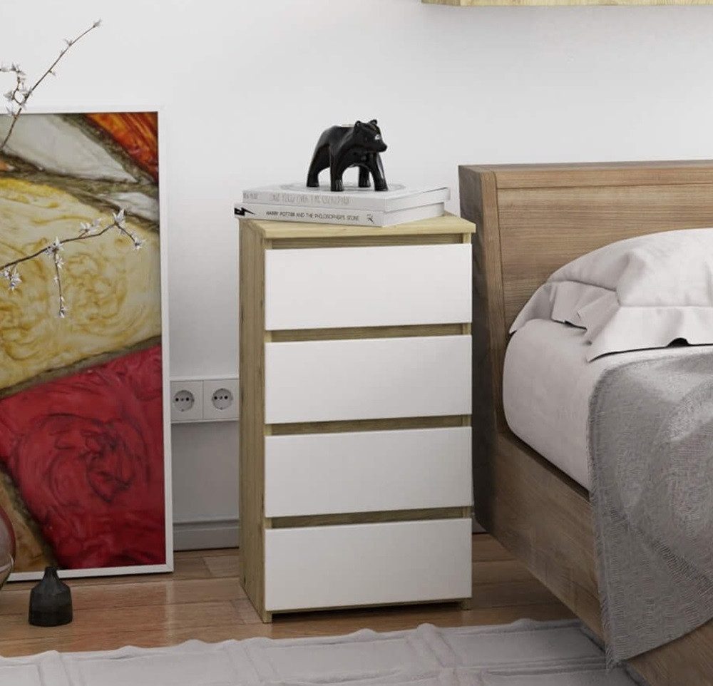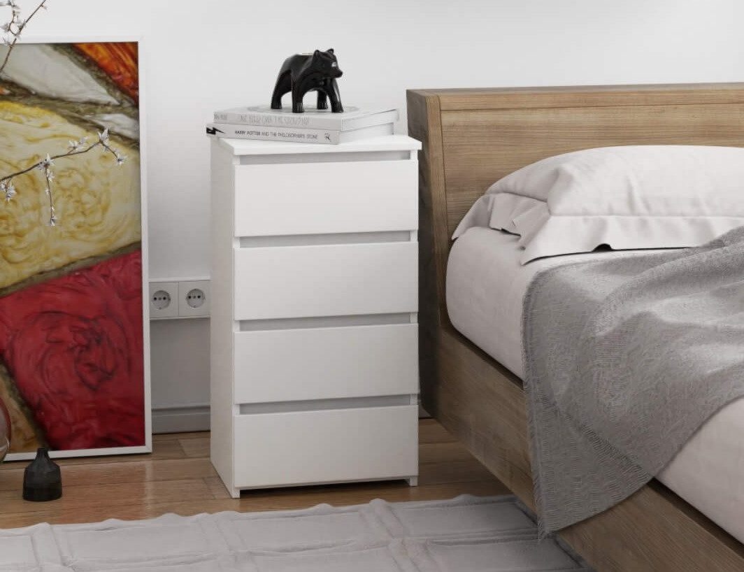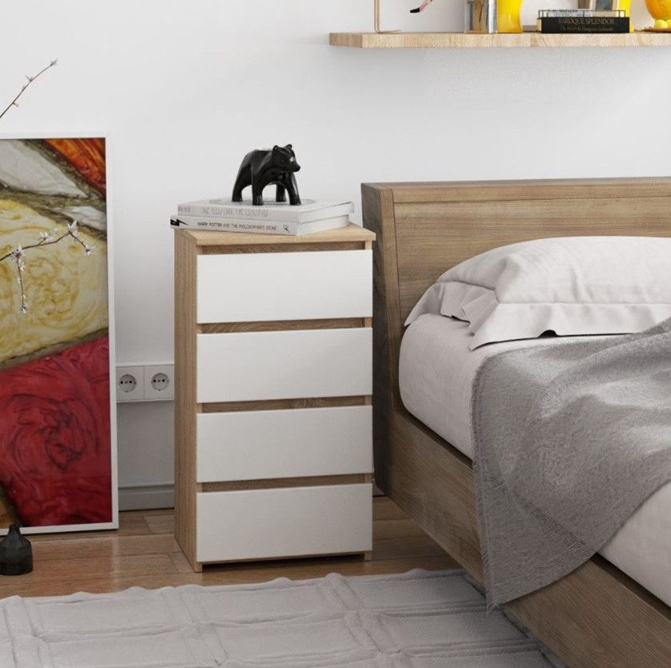Im Inneren finden sich vier geräumige Schubladen, die sich perfekt für die Aufbewahrung von Kleidung, Unterlagen oder anderen persönlichen Gegenständen eignen. Die hochwertigen Metall-Rollführungen sorgen dafür, dass die Schubladen sanft und problemlos bedient werden können. Zudem ermöglicht das integrierte Soft-Close-System ein leises Schließen, wodurch störende Geräusche vermieden werden.