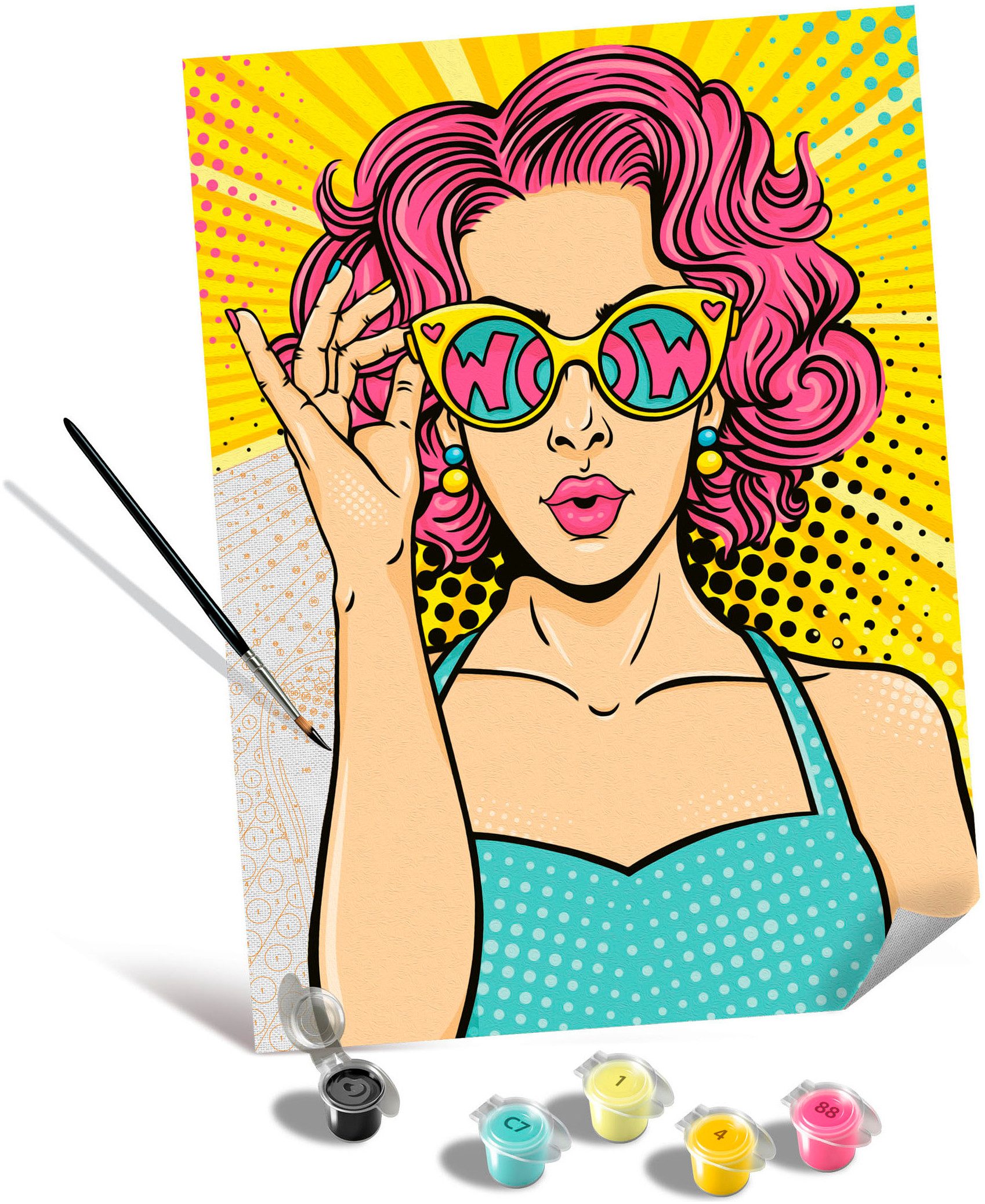 | Lieferumfang | 1 Leinwand im Format 30x40cm 16 Acrylfarben auf Wasserbasis in wiederverschließbaren Näpfchen Anleitung Malunterlage Pinselset mit 3 Pinseln Vorlageblatt |