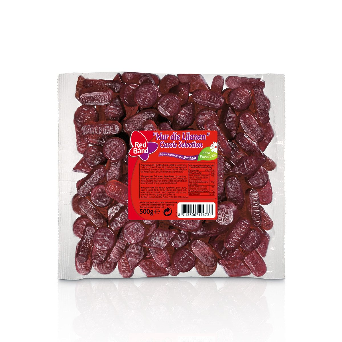 | Bezeichnung des Lebensmittels | Red Band Nur die Lilanen Cassis Selection ohne Farbstoffe 500g |