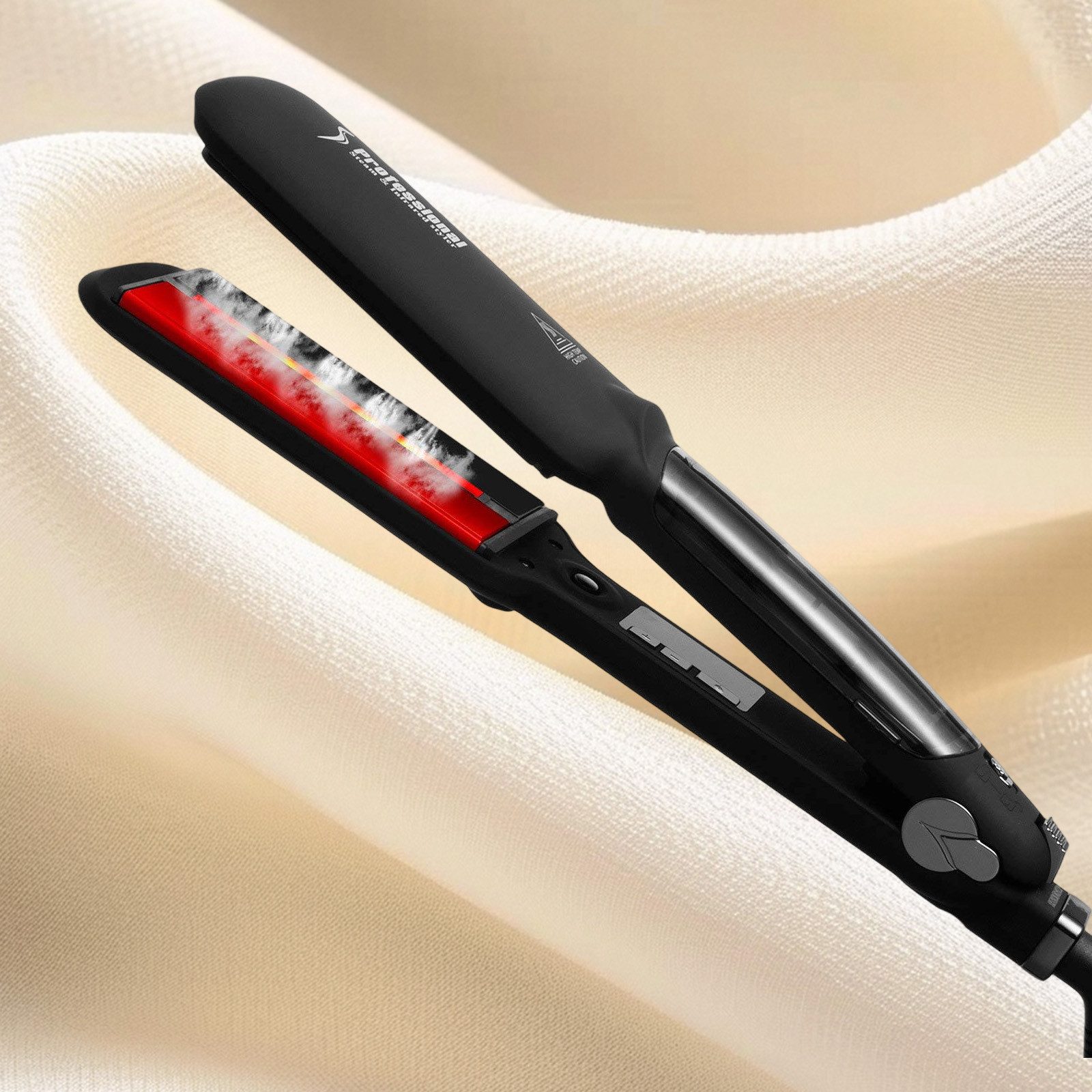 Die 2-Zoll-Heizplatten mit Turmalin-Keramikbeschichtung verteilen die Wärme gleichmäßig und sorgen für ein sanftes Gleiten durch das Haar. Diese Technologie schützt die Haarstruktur vor unnötiger Belastung, reduziert Reibung und hinterlässt ein geschmeidiges, glänzendes Finish.