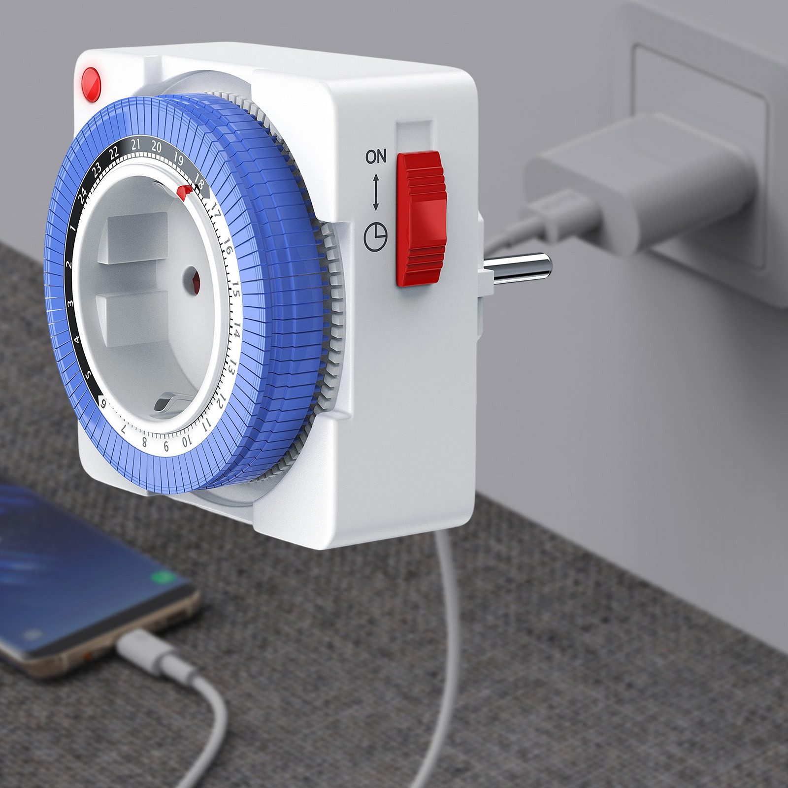 Die Zeitschaltuhr lässt sich intuitiv bedienen: Gewünschte Einschaltzeit auswählen und aktuellen Zeitpunkt einstellen, schon läuft das Gerät automatisch nach Ihrem Plan. Perfekt für alle, die Komfort und Effizienz schätzen.