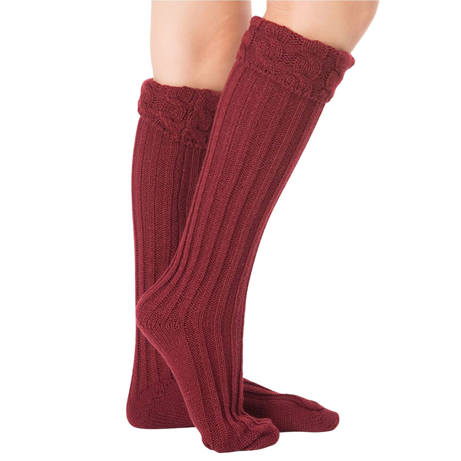 Mit dem dichten Strickmuster und dem dekorativen Zopfmuster-Bund halten die langen Winter Socken Ihre Beine auch an kalten Tagen zuverlässig warm.