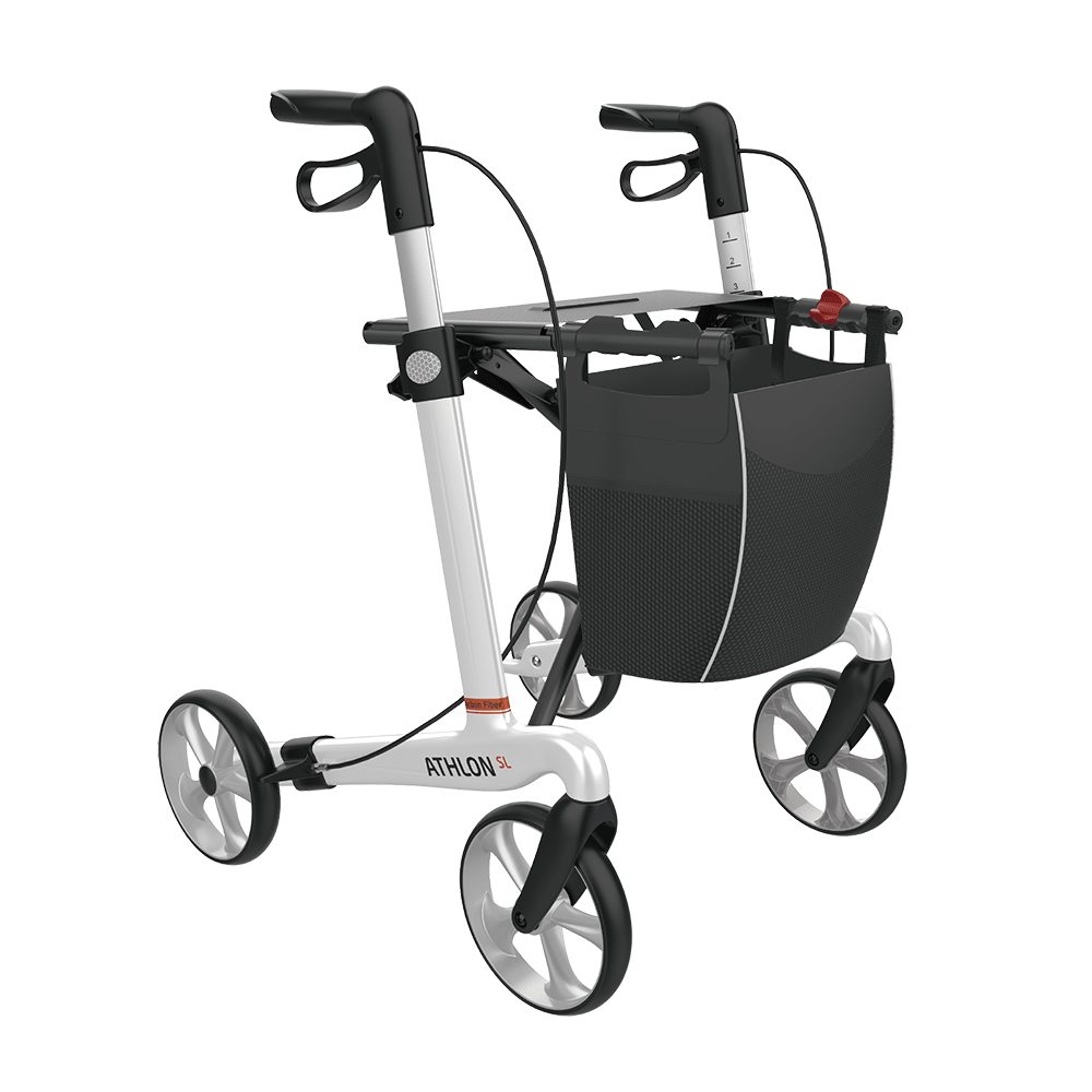 | Ausstattung | Ultraleichter Carbon-Rahmen Einhand-Faltmechanik mit automatischer Verriegelung Ergonomische, höhenverstellbare Griffe mit Scala TPE-Komforträder: leise, stoßdämpfend & pannensicher Integrierte Stufenhilfe zum Überwinden von Bordsteinen Sicherer Stand im gefalteten Zustand auf allen 4 Rädern Faltbare Einkaufstasche Stockhalter inklusive Reflektoren für bessere Sichtbarkeit 8 Jahre Herstellergarantie auf den Rahmen |