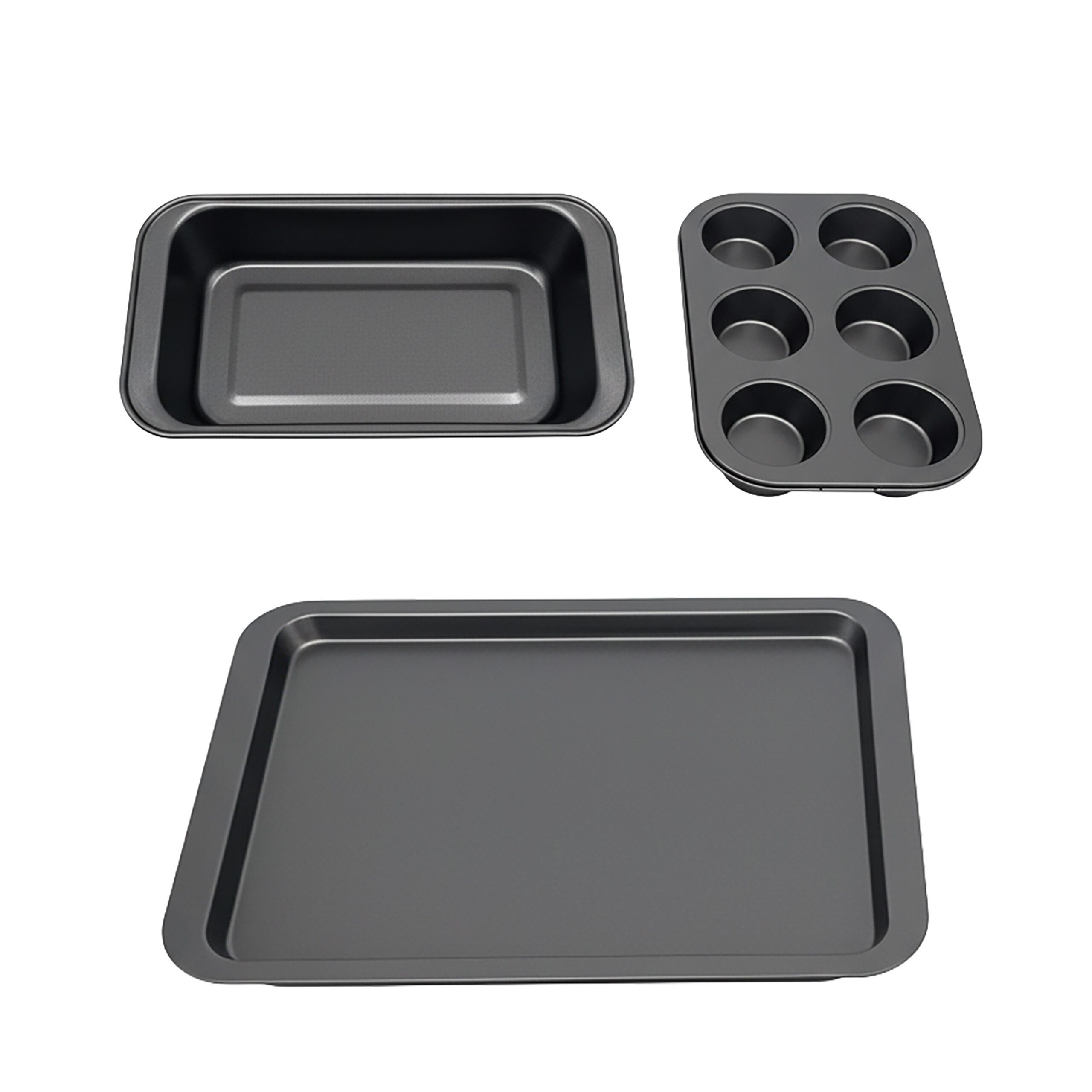 Ofenform im 3er Set - 3-teiliges Set zum Backen verschiedener Kuchen - Für 6 Muffins, Kastenkuchen, Brot, Braten, Aufläufe uvm. - Antihaftbeschichtung für leichtes Lösen des Gebäcks - Aus Carbonstahl für eine optimale Wärmeverteilung - Tortenbackformen unkompliziert mit der Hand reinigen