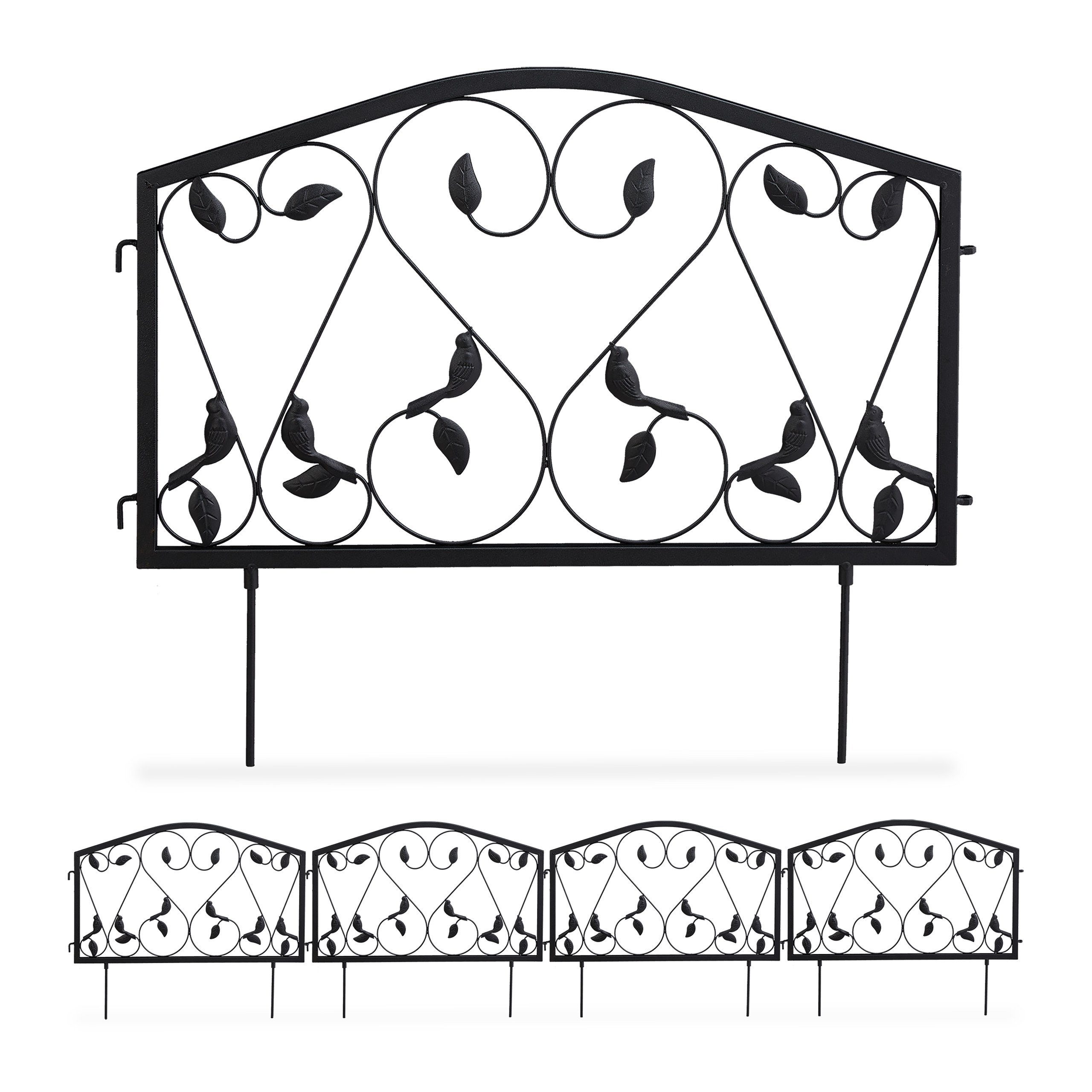 Mit diesem Steckzaun markieren Sie nicht nur die Übergänge zwischen Beeten, Grünflächen, Wegen und Rabatten. Darüber hinaus verleihen Sie Ihrem Garten neue optische Akzente. Um die Beeteinfassung zu arrangieren, wird diese lediglich im Boden versenkt, wo die Erdspieße für optimalen Halt sorgen. Sie können die Elemente des Zierzauns je nach Bedarf dreieckig, viereckig, gerade oder als Ecke aneinanderreihen. Der Dekozaun sorgt dabei mit seinem antiken Design für einen Hingucker in Ihrem Garten.