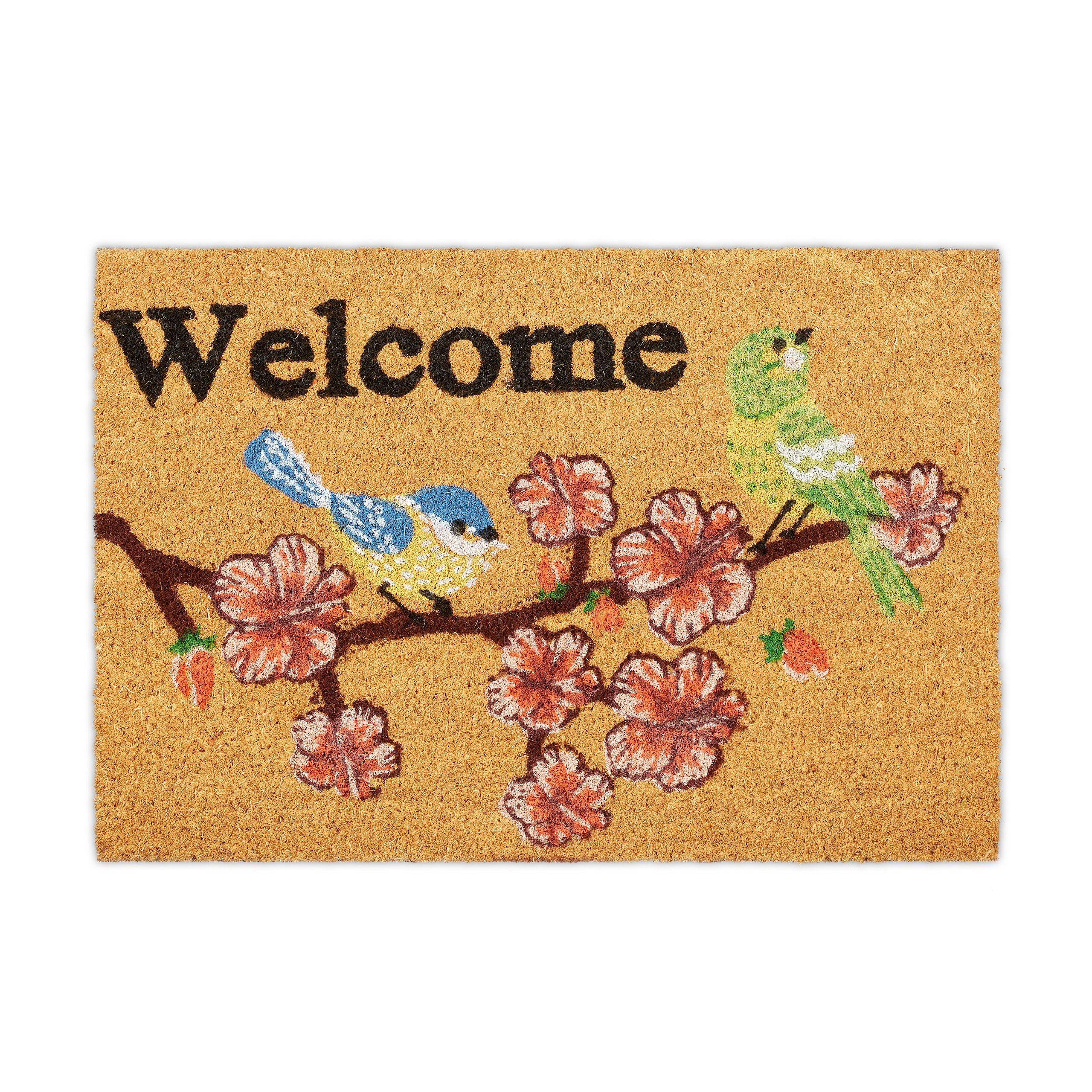 Mit Aufdruck: Eingangsmatte mit floralem Motiv - Welcome Schriftzug mit aufgedruckten Kirschblüten